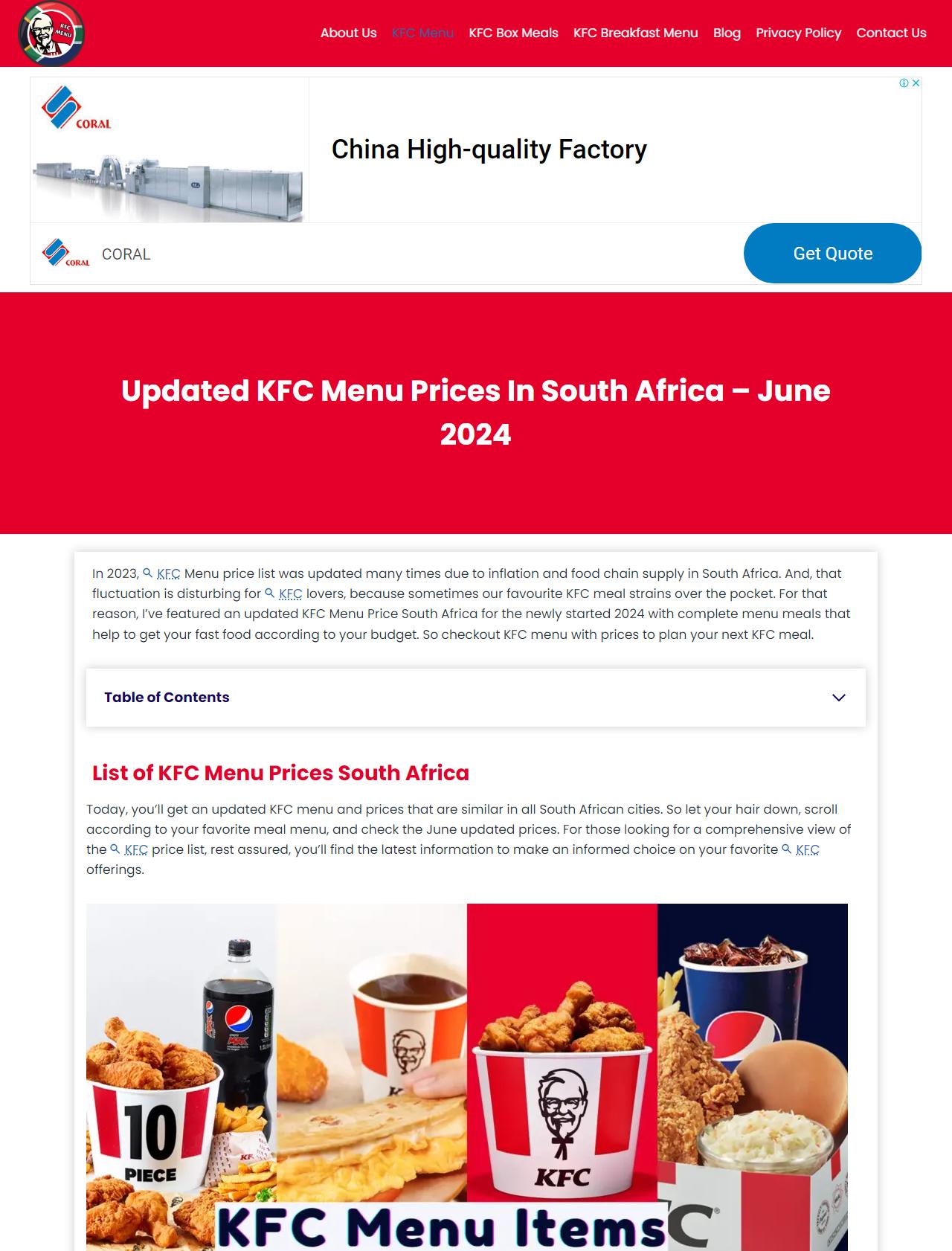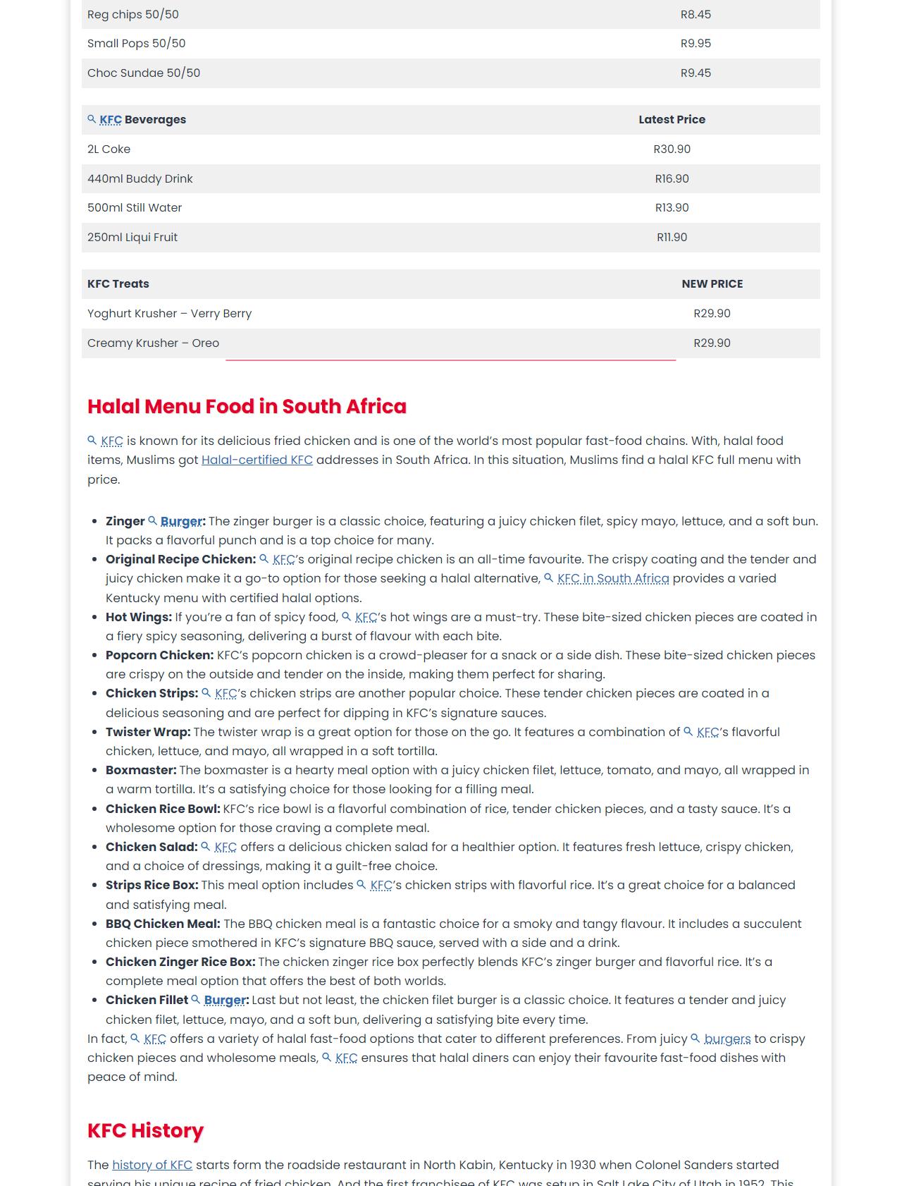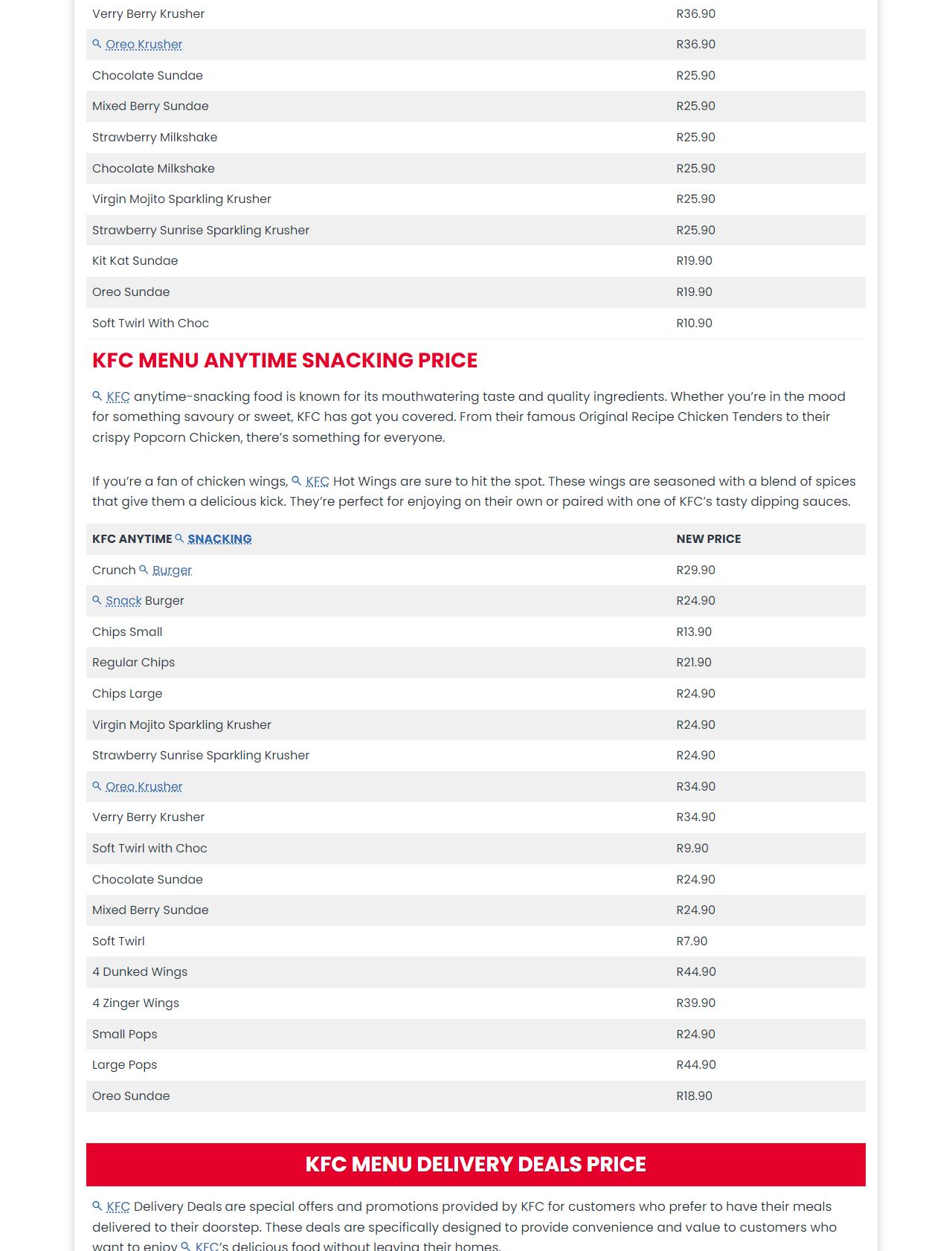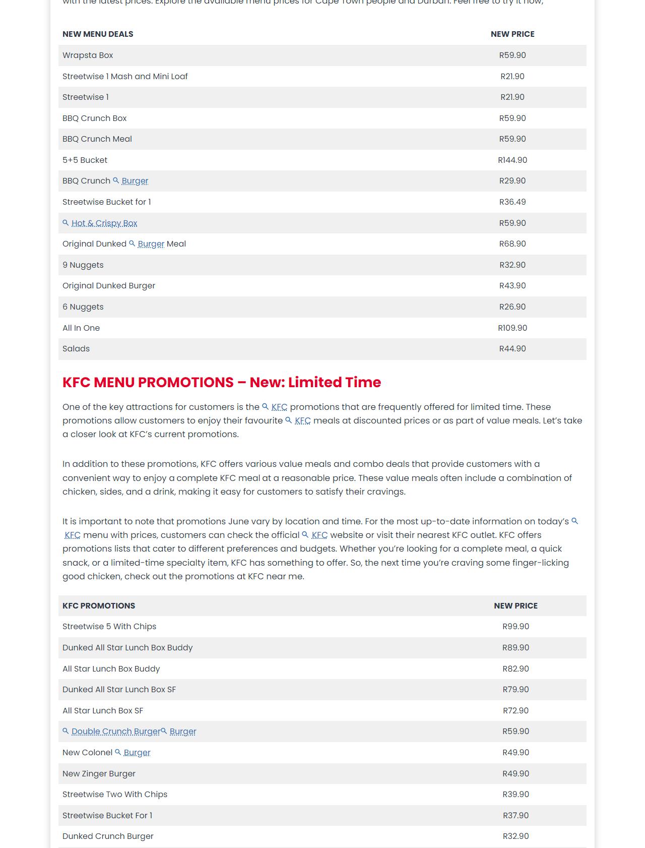 KFC Menu South Africa