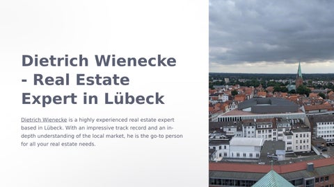 Lernen Sie Dietrich Wienecke kennen, einen hochqualifizierten Immobilienprofi mit einem reichen Hintergrund in Lübeck. Mit über 15 Jahren praktischer Erfahrung hat Dietrich die Feinheiten der Immobilienbranche gemeistert. Sein Engagement für hervorragende Leistungen, seine profunde Kenntnis des lokalen Marktes und sein Engagement für die Zufriedenheit seiner Kunden machen ihn zu Ihrem zuverlässigen Partner in der Welt der Immobilien.