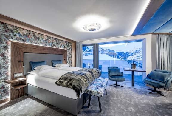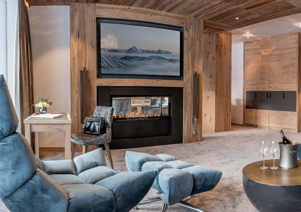 Luxus Suite mit Lounge Bereich, Chalet Stube & Privat Bar, Schlafzimmer, begehbarer Schrankraum, großes Badezimmer mit Badewanne & Dusche, Sauna, Flat TV, WC & Bidet getrennt, zweites Schlafzimmer mit separatem Badezimmer, Dusche, Fön, Badetasche mit Bademäntel, Flat TV in allen Wohn- und Schlafräumen, Blu-ray-Player, Nespresso Maschine, Telefon, B & O Sound System, Radio, Safe, Minibar, 48 m² Balkon Südlage