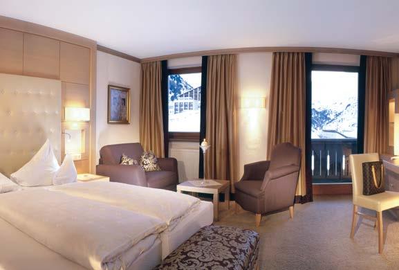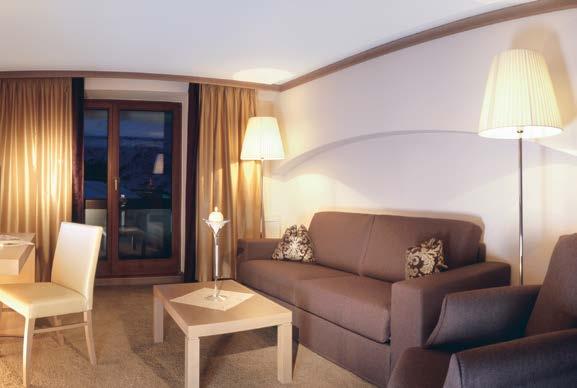 Luxus Suite mit großzügigem Wohnbereich, Schlafzimmer, großes Badezimmer mit Badewanne & Dusche, TV-Spiegel, Infrarotkabine, WC getrennt, Fön, Badetasche mit Bademäntel, begehbarer Schrankraum, Flat TV im Wohn- und Schlafraum, Blu-ray-Player, Telefon, Radio, Safe, Minibar, 20 m² Terrasse Südlage