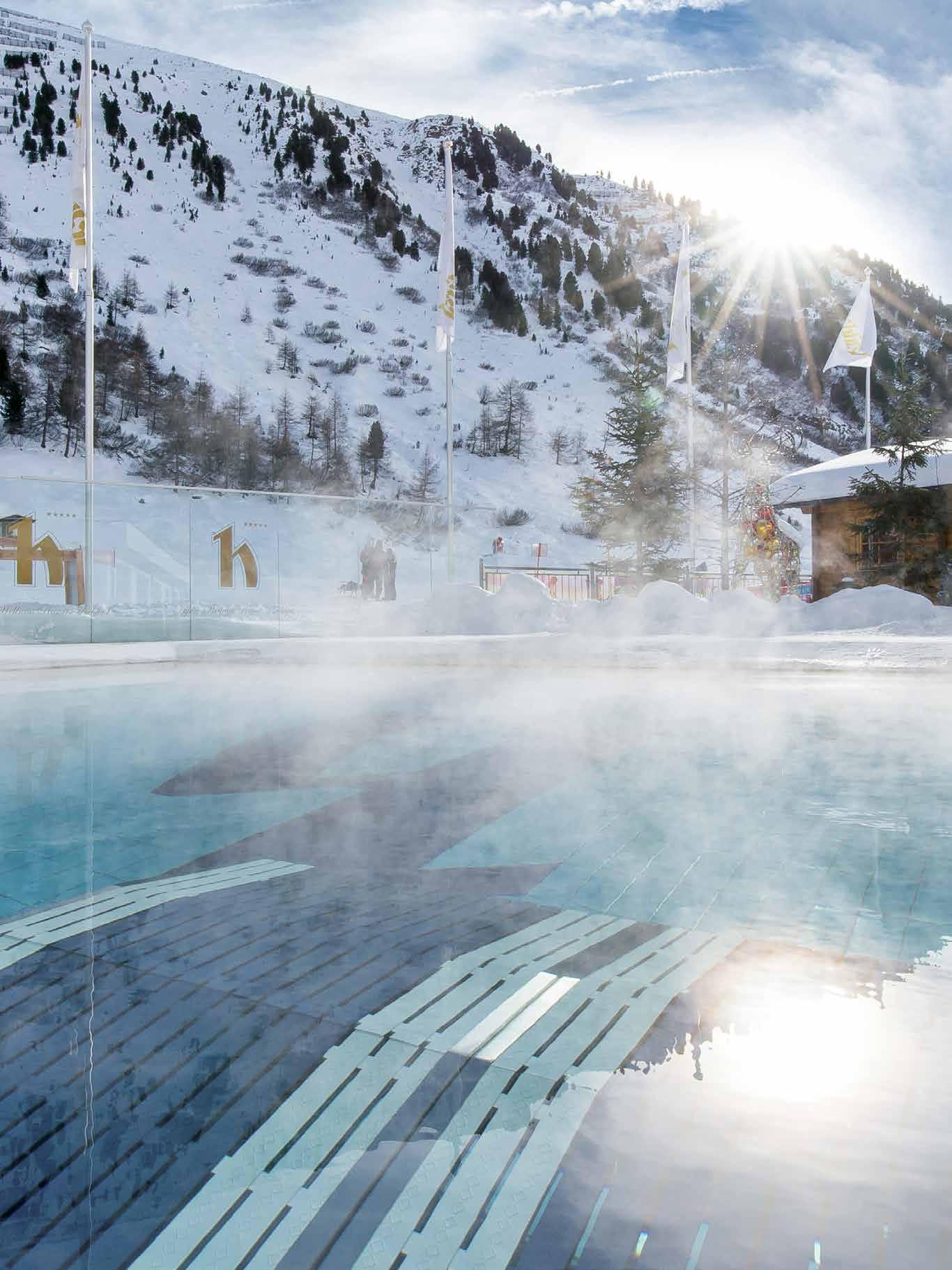 Sich ganz dem Moment hingeben, Harmonie spüren, Kraft tanken –im „Alpen Spa“ des Hochfirst***** gelingt dies auf besonders luxuriöse Weise. Die exklusive Wellnesslandschaft vereint auf 1.500 m² alles, was Körper und Geist zum Regenerieren brauchen: wärmende Saunawelten, eine Tiroler Saunahütte, wohltuende Dampfbäder und traumhafte Ruhezonen, dazu 220 m² pures Badevergnügen im In- & Outdoorpool. Schwimmen Sie von drinnen nach draußen, atmen Sie die klare Bergluft und bestaunen Sie das Panorama der umliegenden 3.000er Gipfel.