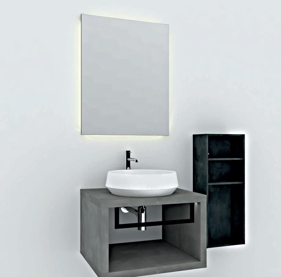 Specchiera con struttura pannello in MDF, con specchio in cristallo spessore 6 mm, arrotondato , molatura a 35°