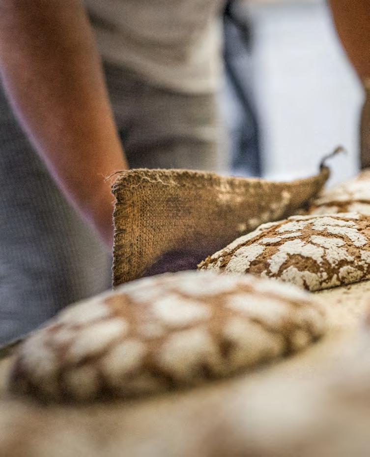 len, Musik läuft, die Semmelstraße ebenso, die Stimmung pendelt zwischen Sprüchen, Gelächter und wortlosem Verständnis. „Jeder von uns hat sein Gebiet, aber wenn nötig helfen wir alle zusammen“, sagt Juniorchef Julian Kurz. Nach der Endgare folgt der spannendste Moment: das Einschießen der Teiglinge in die Öfen. Bis dahin haben die Brote – vom Vorteig bis zur Endgare – oft schon über 24 Stunden hinter sich. Diese lange Teigführung macht sie übrigens nicht nur bekömmlicher, sondern auch geschmacklich unverwechselbar. Spätestens jetzt weht herrlicher Duft durch die Backstube. Knurrt da etwa ein Magen? Gleich mal reinbeißen? Noch nicht: Zuerst erfolgt die Qualitätskontrolle, sobald die Brote aus dem Ofen kommen. Aussehen, Geruch, Textur, Geschmack – alles muss passen. Erst dann wandern die Laibe in die Kisten der Brotfahrer oder direkt in die Regale der Filiale Ischgl. „Unser schönster Moment des Tages: das fertige Produkt in den Händen zu halten“, meint Mario. „Man sieht sofort, ob man’s richtig gemacht hat.“