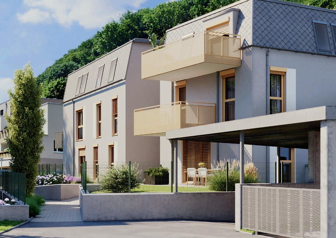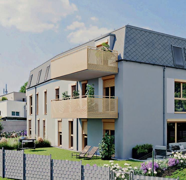 Zwei große Kinderspielplätze, Fahrrad- und Kinderwagenabstellplätze im Kellergeschoss, eine Tiefgarage und ein natürlicher Baum- und Strauchbestand runden das Angebot ab. Beide Wohnhäuser erhalten eine BauXund-Zertifizierung und erfüllen alle EU-Taxonomiekriterien.