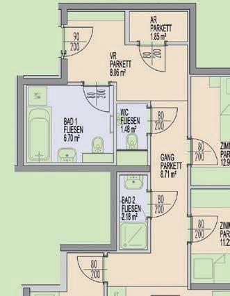 In den Wohnräumen wird ein AustriaWood-EdeldielenParkettboden (Eiche wie gewachsen oder gleichwertig) verlegt. Dieser Boden sorgt für ein heimeliges, gemütliches Wohngefühl. Der individuelle Touch wird mit eigenen Möbeln und Accessoires gesetzt.