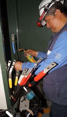 Se realiza la instalación de zapatas hidráulicas en el conductor de puesta a tierra de los insertos operación con carga. De igual manera, se realiza la aplicación de lubricante con Silicón dieléctrico para asegura una interconexión hermética.