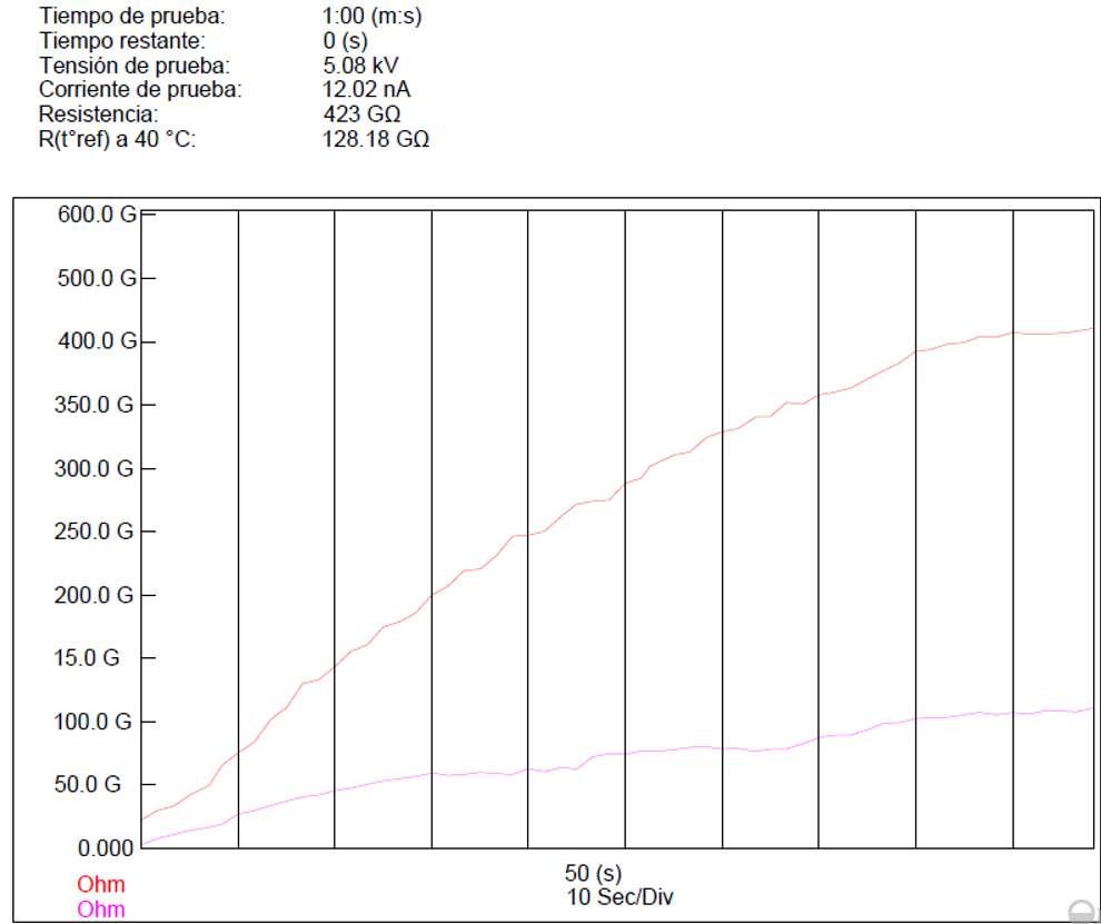 Comparando los resultados obtenidos contra los valores recomendados por la Norma ANSI-NETA-MTS-2007, podemos determinar que el nivel de aislamiento en las bobinas de Alta y Baja Tensión se encuentra por arriba del valor mínimo recomendado, permitiéndonos garantizar que los elementos aislantes del Transformador se encuentran libres de agentes contaminantes y con un bajo contenido de humedad.