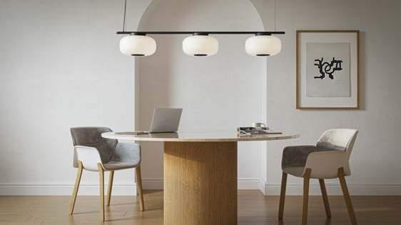 Beaded S is a family of pendant luminaires manufactured in aluminium and blown glass. Beaded is available in an individual version (S1) or in clusters of 3 or 5 light fittings (S3 and S5), as well as in a horizontal version with two or three luminaires (SH2 and SH3). Its double blown glass diffuser is available in opal white or smoke grey; the latter option contains a flat internal diffuser to prevent the light source from being seen. These luminaires can be freely installed at different heights, meaning they can be adapted to any height. The central aluminium ring is made with a textured matte black finish.