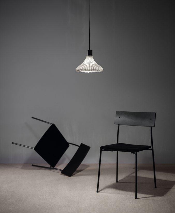 [ES] Baleira —vacía en gallego— es una reinterpretación en malla de acero de la forma geométrica y atemporal de la cúpula clásica, lo que cambia radicalmente su carácter convirtiéndola en algo etéreo, casi intangible. La fuente de luz LED perimetral refuerza la sensación de vacío y ligereza visual, creando una presencia sutil y delicada. Esta luz se materializa tanto en una iluminación directa sobre la mesa como en una iluminación ambiental generosa, lo que, junto a una ingeniosa regulación del ángulo de la cúpula, influye notablemente en la distribución de la luz en el espacio.
