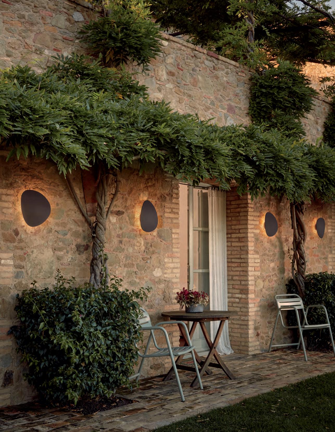 Sus formas orgánicas, como piedras de rio gastadas, hacen de ellas un objeto singular. A diferencia de las Tria indoor y debido a su grado de protección IP-66, las Tria outdoor no pueden instalarse de forma modular, son luminarias individuales.