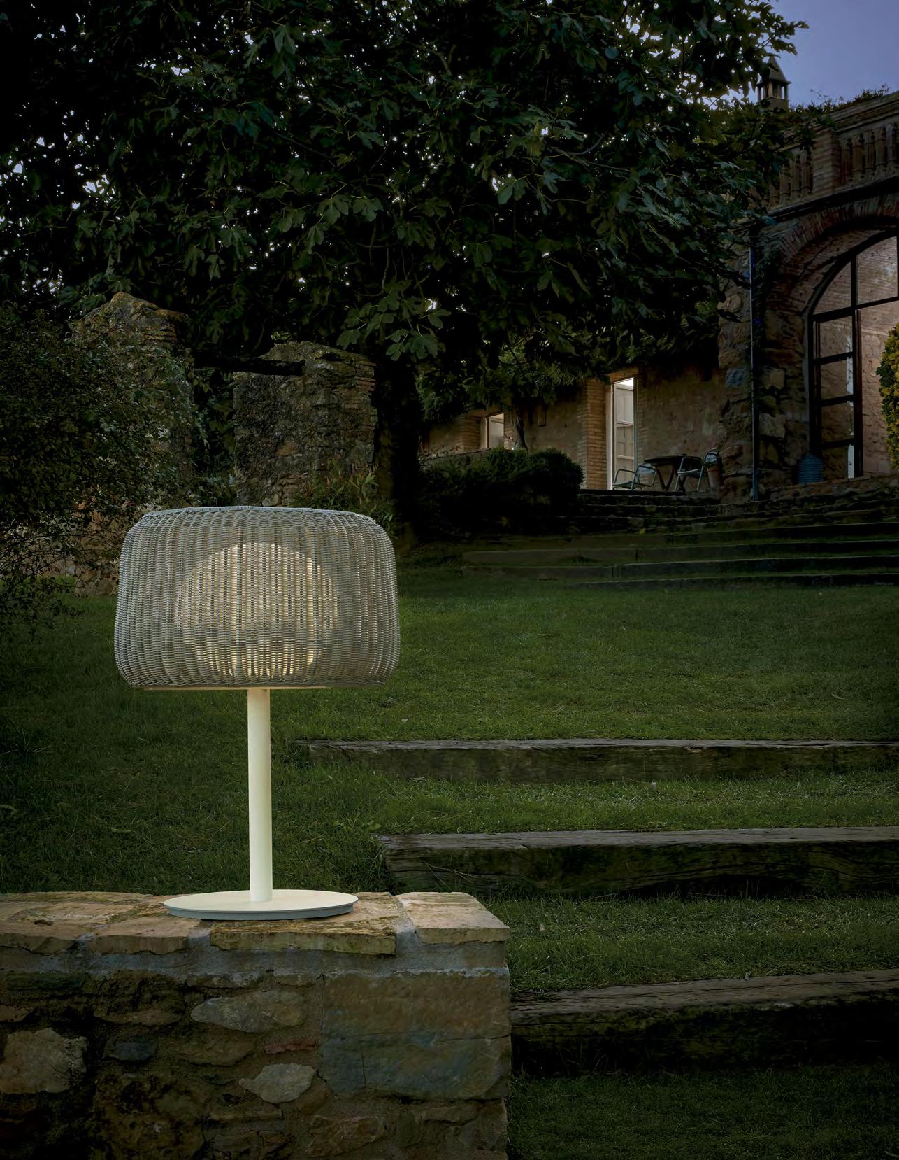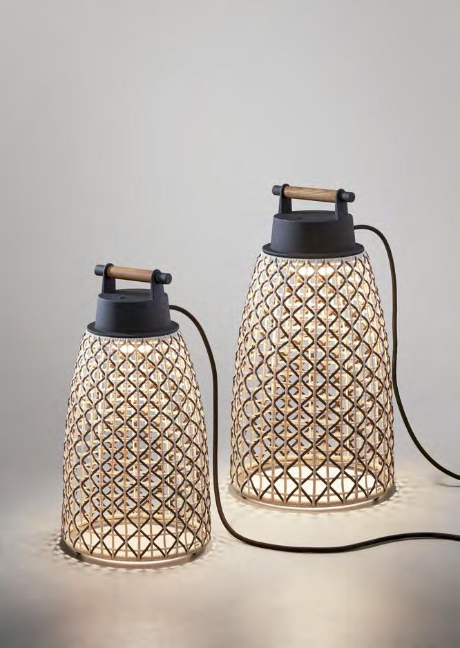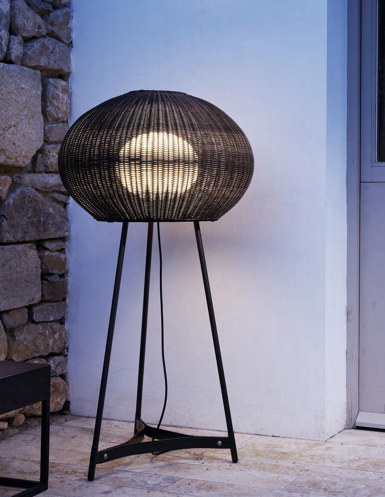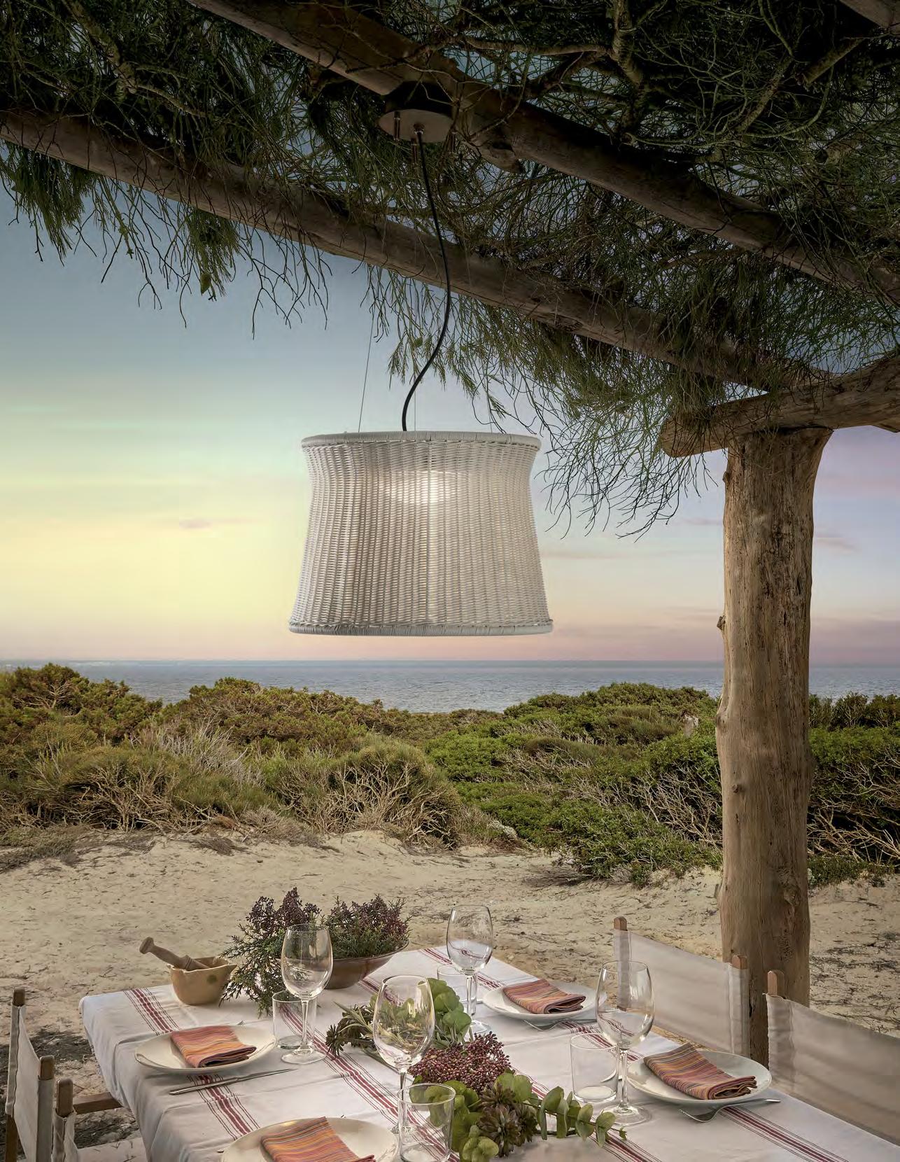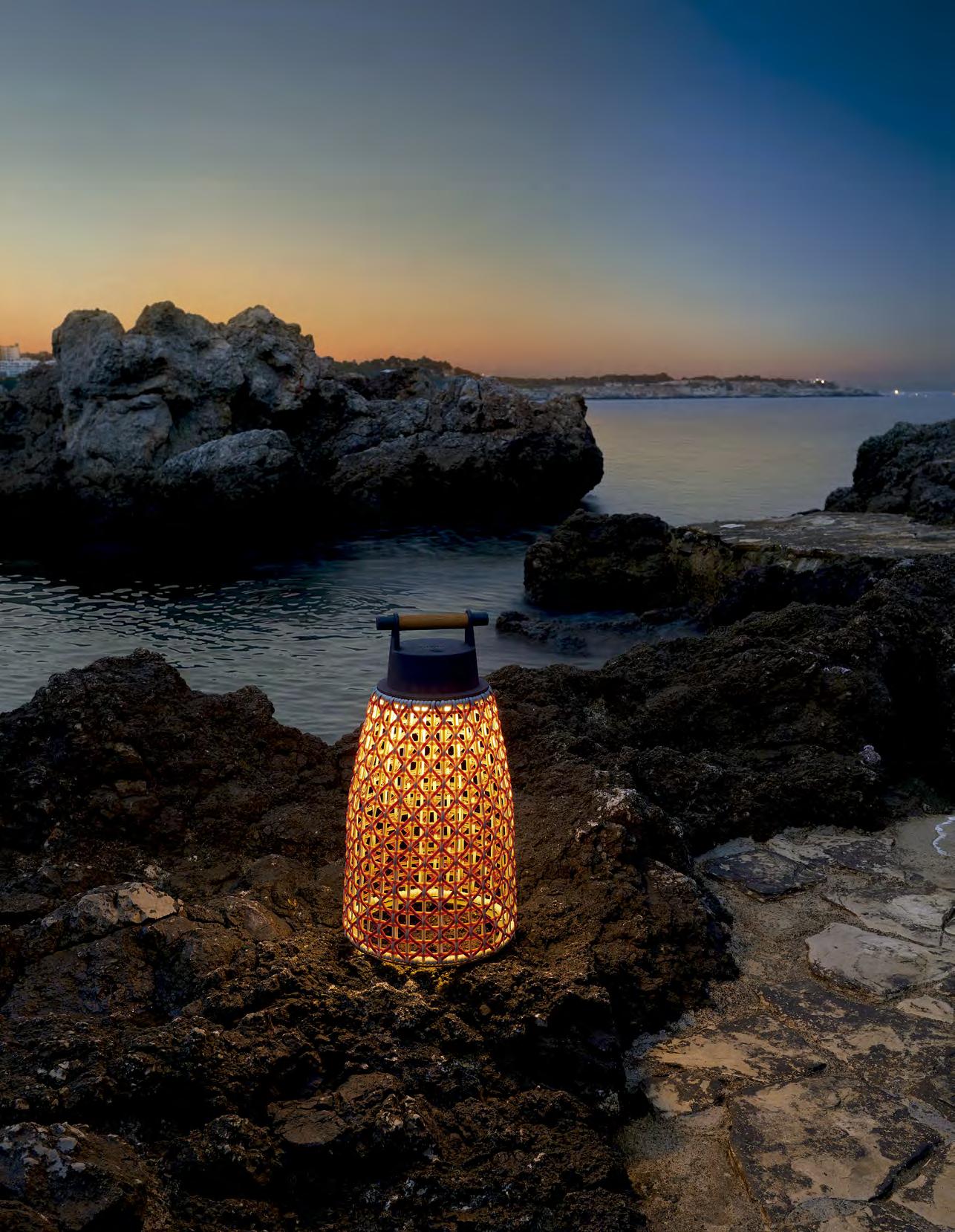 El denominador común de esta colección es la combinación de resistencia y sensibilidad. Resistencia ya que está diseñada para poder vivir cómodamente a la intemperie, y sensibilidad expresada en la delicadeza con que tamiza la luz y la calidez general de la lámpara. Estas características hacen que tanto dentro como fuera de un espacio arquitectónico, ayuden a crear una sensación de continuidad.