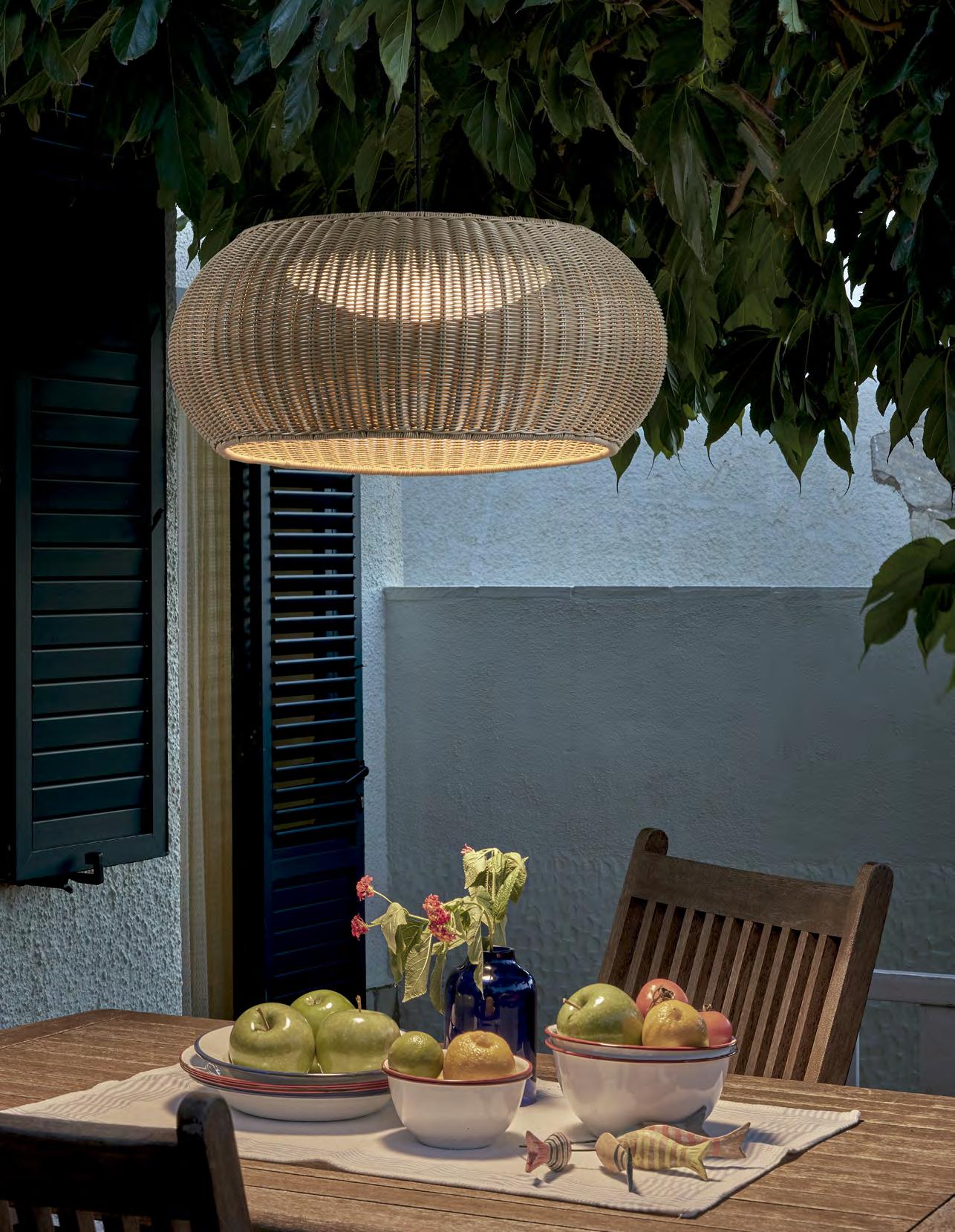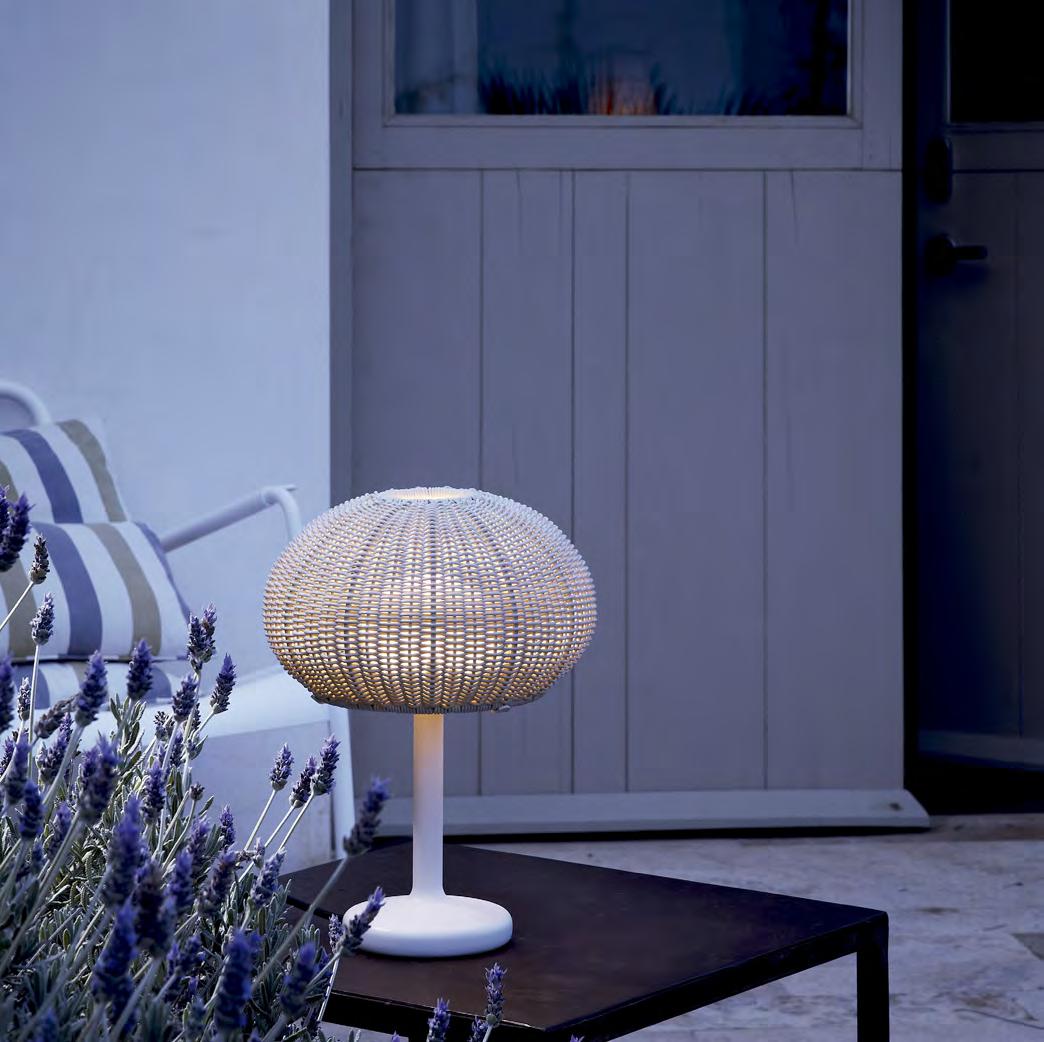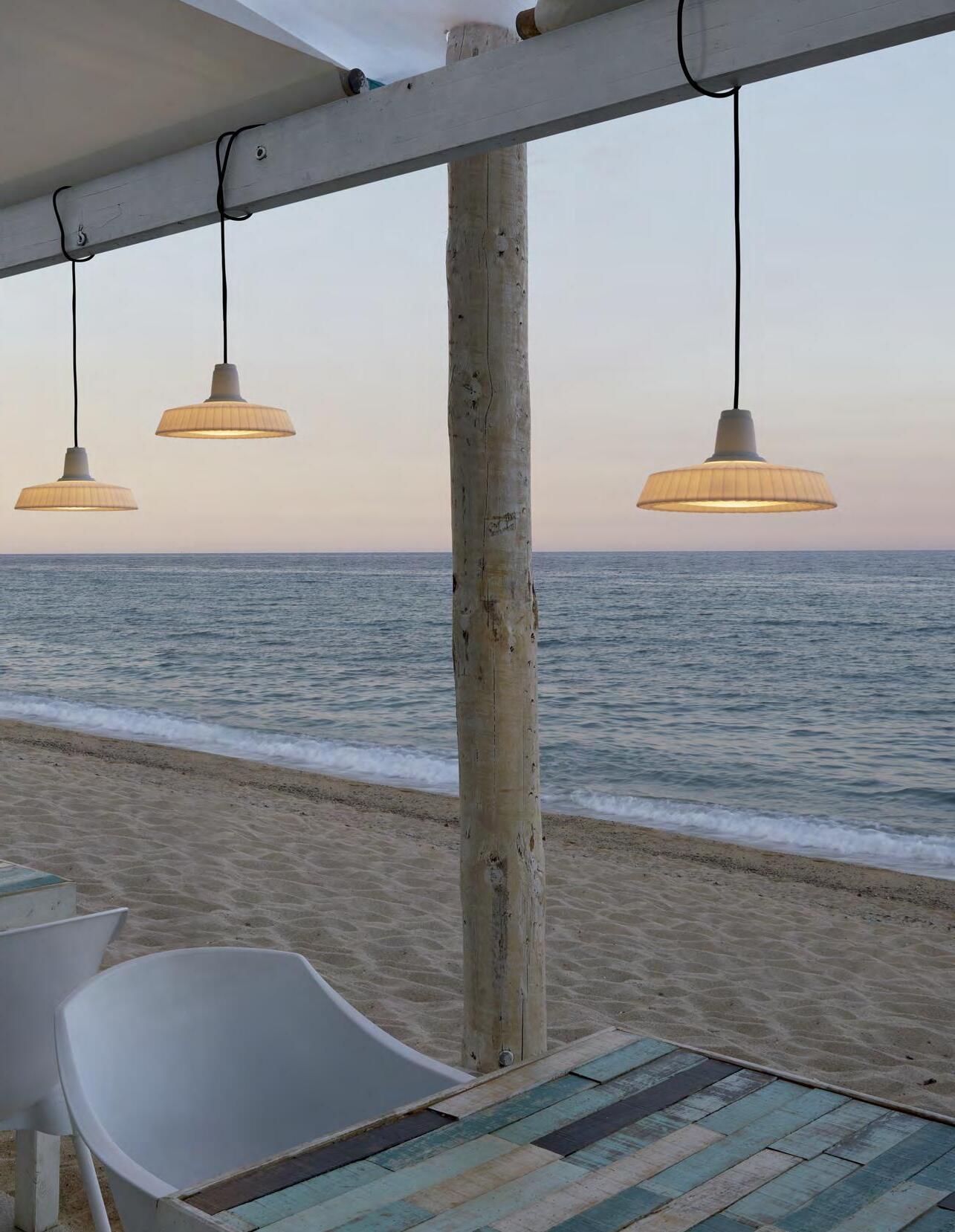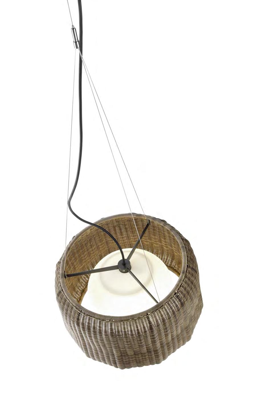 El denominador común de esta colección es la combinación de resistencia y sensibilidad. Resistencia ya que está diseñada para poder vivir cómodamente a la intemperie, y sensibilidad expresada en la delicadeza con que tamiza la luz y la calidez general de la lámpara. Estas características hacen que tanto dentro como fuera de un espacio arquitectónico, ayuden a crear una sensación de continuidad.