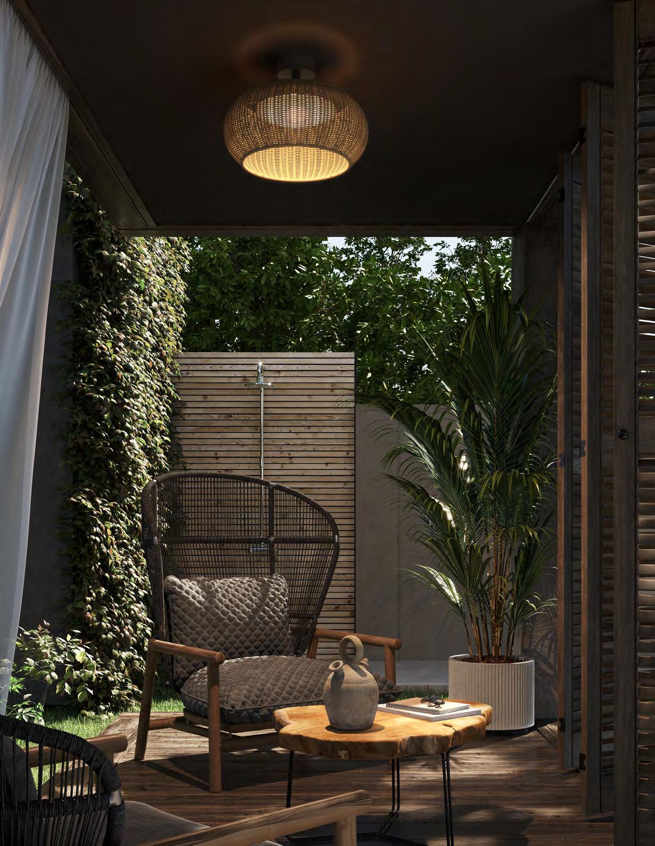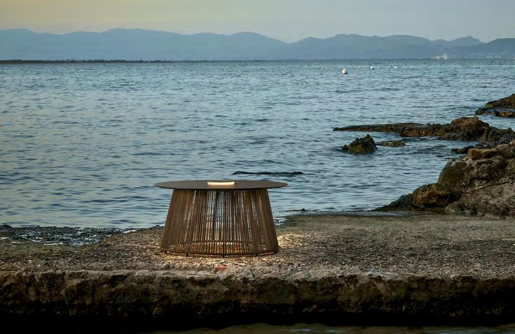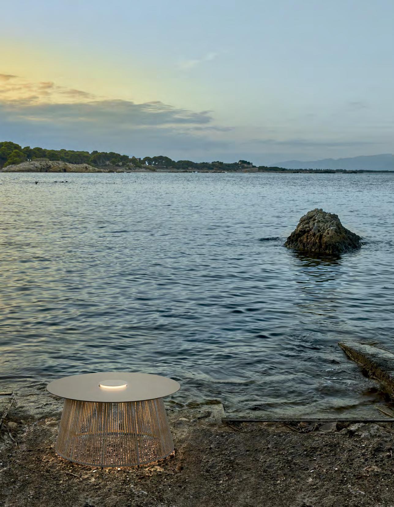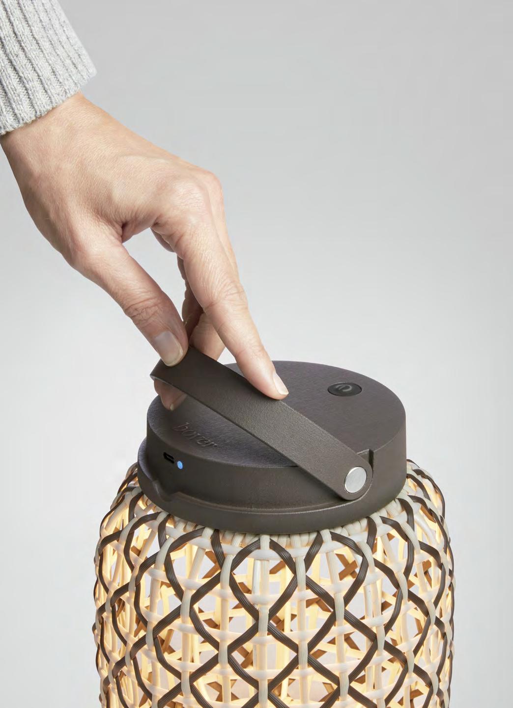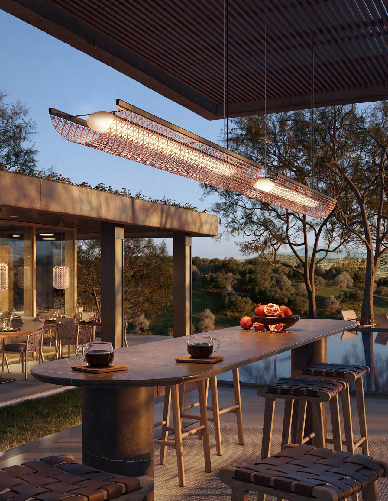 El denominador común de esta colección es la combinación de resistencia y sensibilidad. Resistencia ya que está diseñada para poder vivir cómodamente a la intemperie, y sensibilidad expresada en la delicadeza con que tamiza la luz y la calidez general de la lámpara. Estas características hacen que tanto dentro como fuera de un espacio arquitectónico, ayuden a crear una sensación de continuidad.
