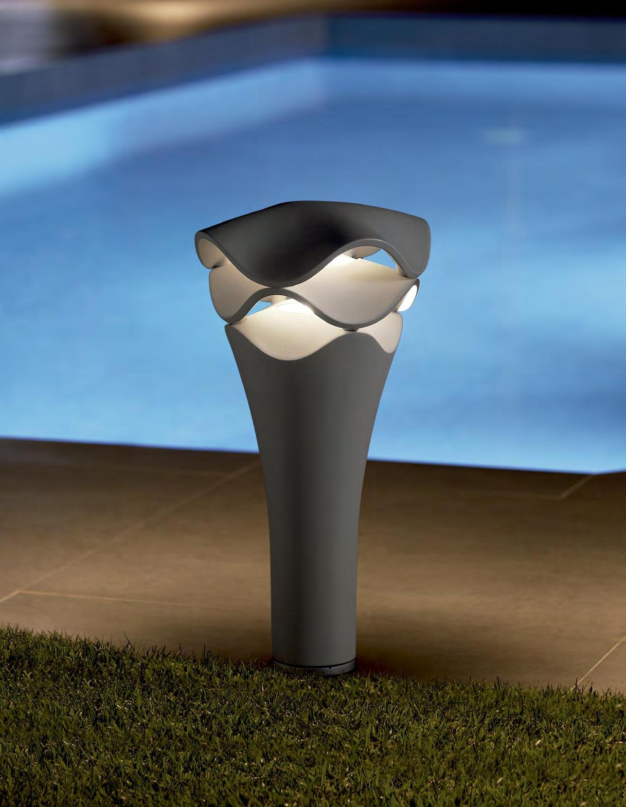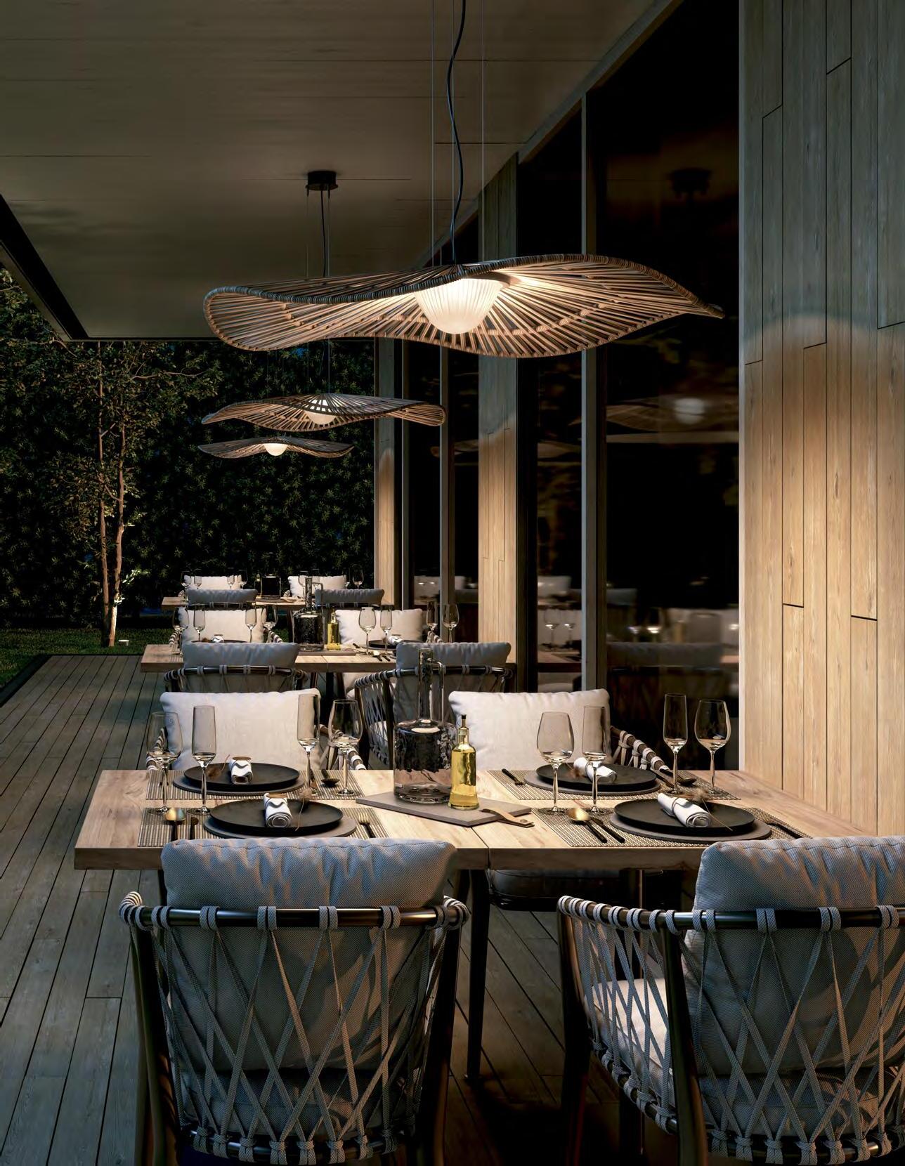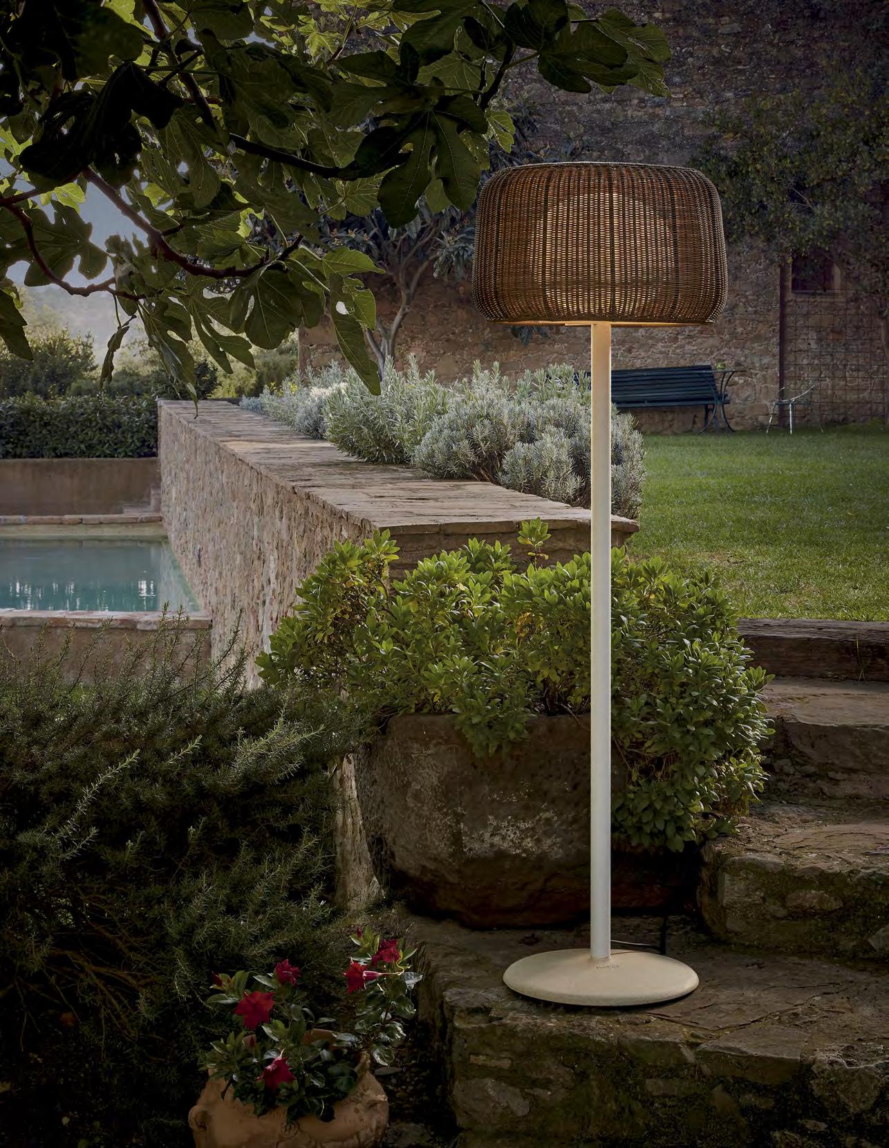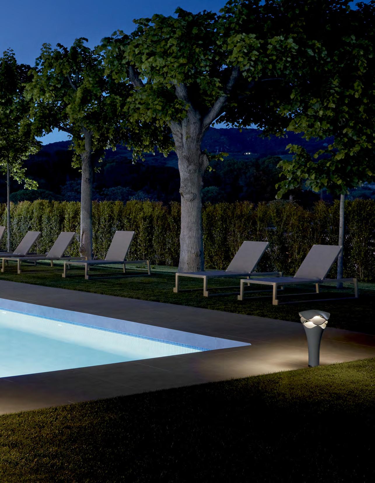 This collection’s common denominator is the combination of resistance and sensitivity. Resistance because it is designed to be able to stay happily outdoors, and its sensitivity shows in the delicacy with which it filters the light and the overall warmth of the lamp. These features help to create a sense of continuity both on the inside and outside of an architectural space.