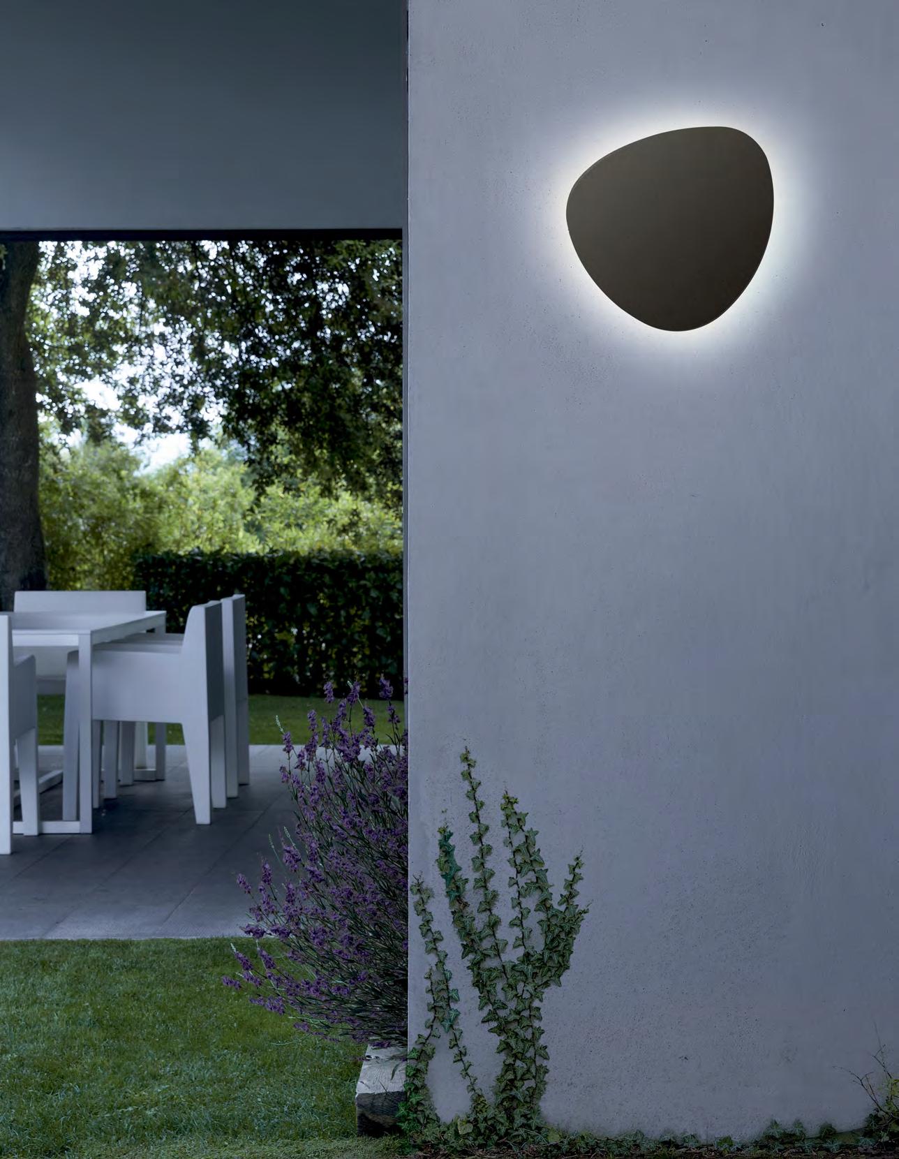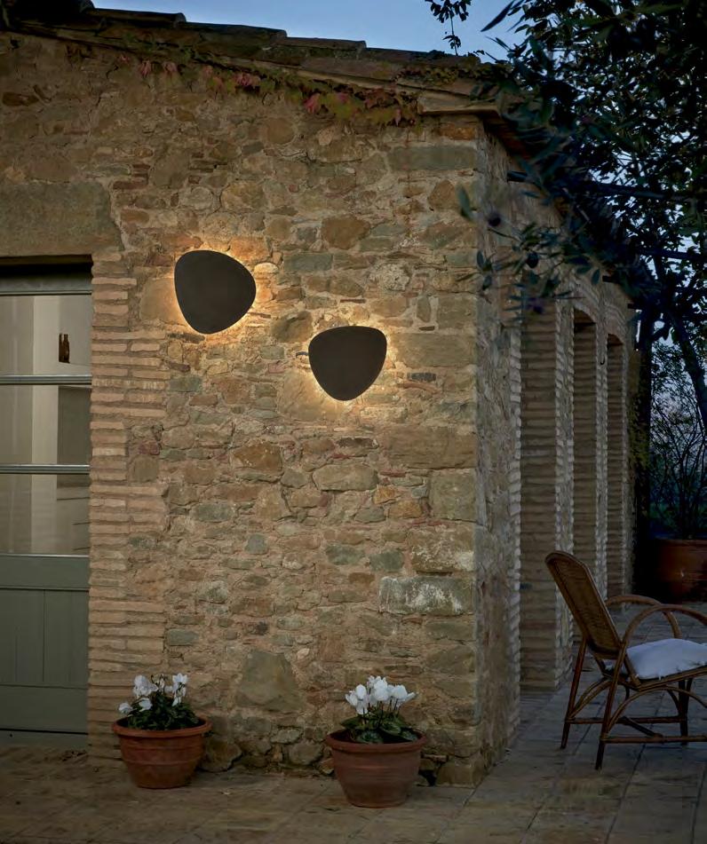 Sus formas orgánicas, como piedras de rio gastadas, hacen de ellas un objeto singular. A diferencia de las Tria indoor y debido a su grado de protección IP-66, las Tria outdoor no pueden instalarse de forma modular, son luminarias individuales.