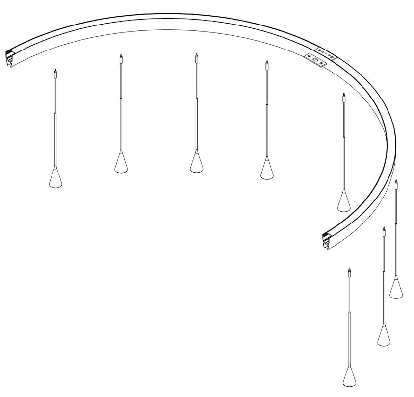 In addition, Catenaries and Tracks can be hung from the ceiling or wall, according to requirements on of the environment. This support contains an inner pivot point allowing for easy positioning of the cable.