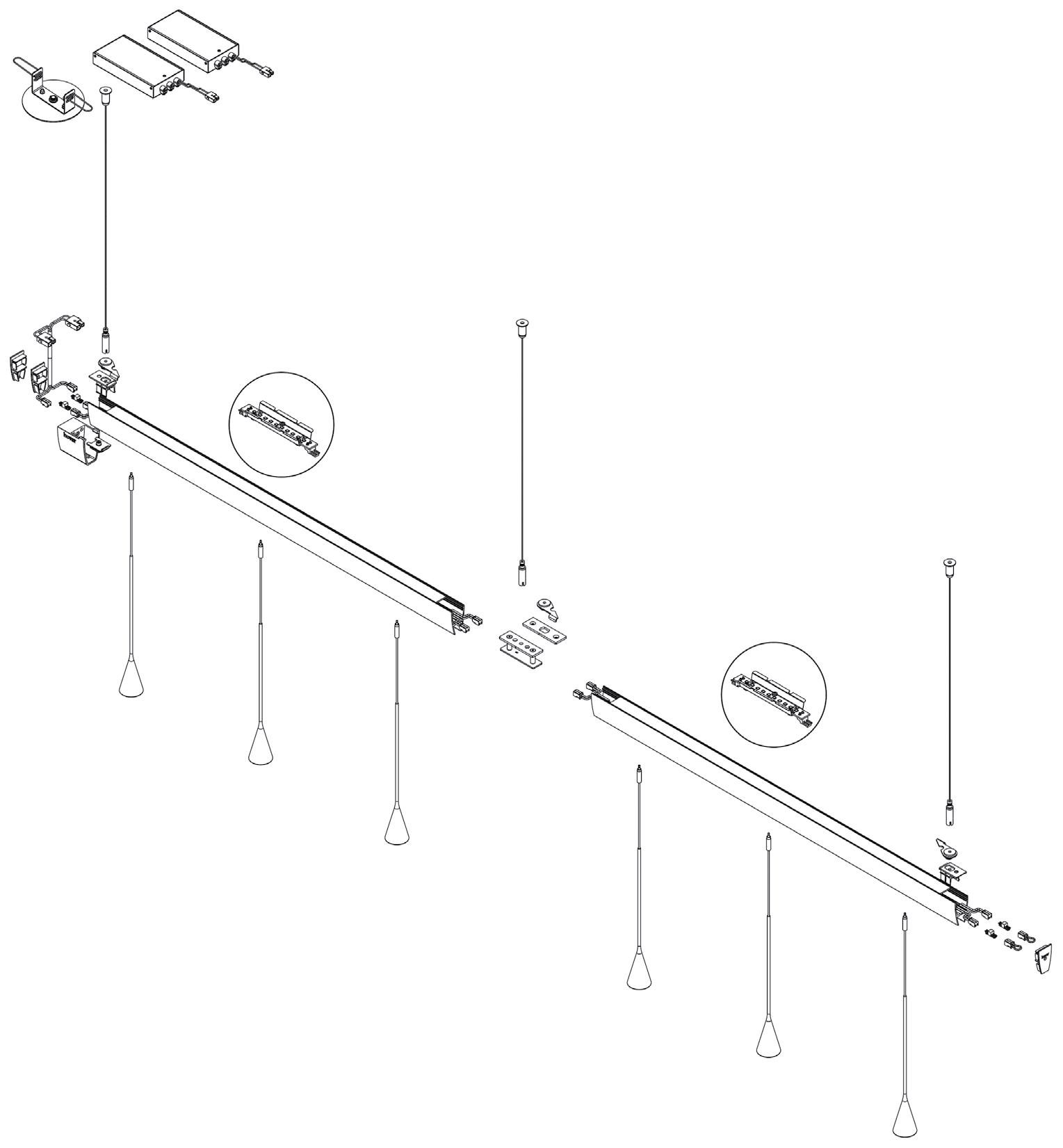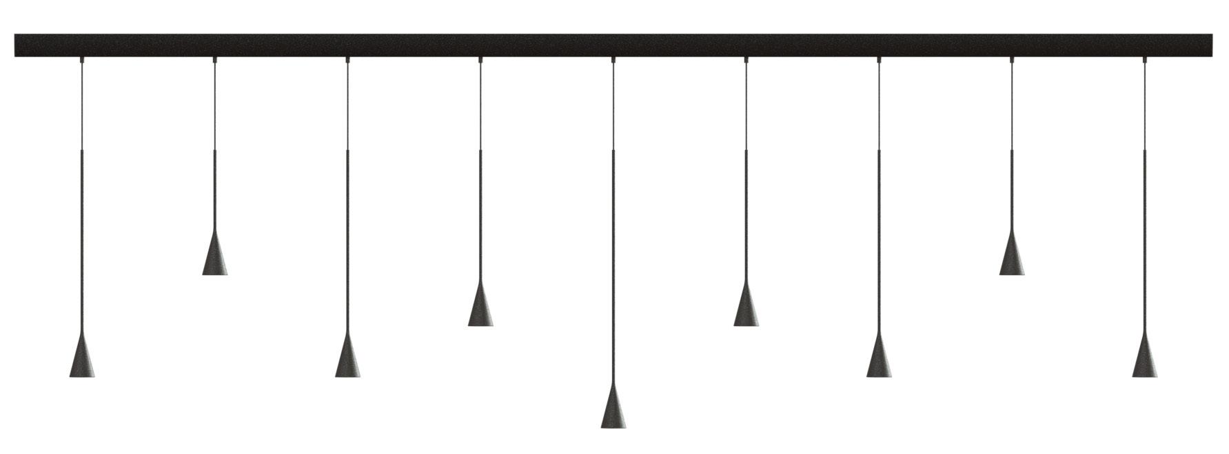 Individual surface mounted driver for ceiling. Skybell catenary power for 5, 7 or 9 lights. Electrical connection and anchoring. Ebony black color.