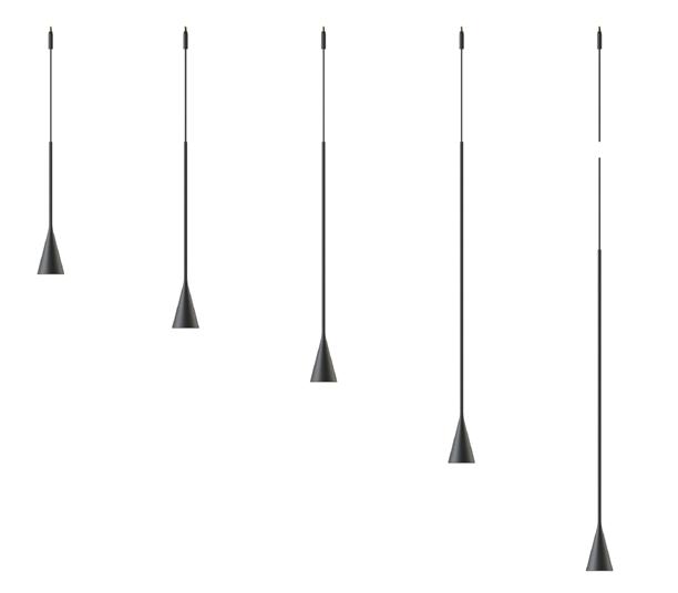 In all versions the luminaire is always black, but can be customized. The wire and the Core can’t be customized.