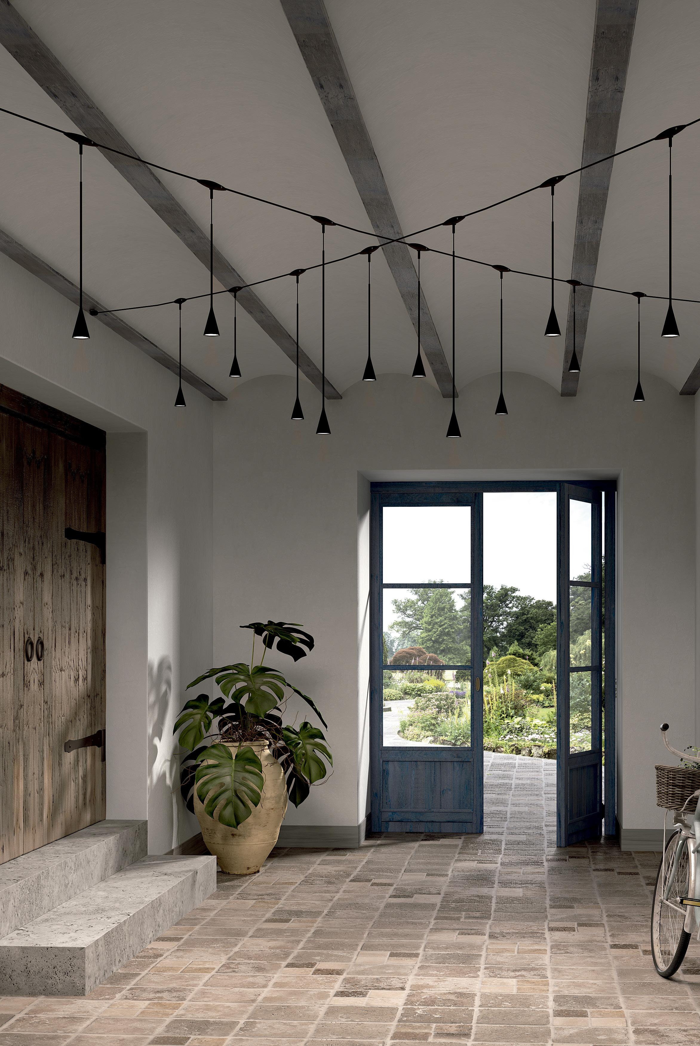 Al mismo tiempo, las Catenarias y los Perfiles permiten ser colgados del techo o de la pared según cuáles sean las necesidades del entorno. Este soporte incorpora una rótula interior que permite posicionar el cable con facilidad.