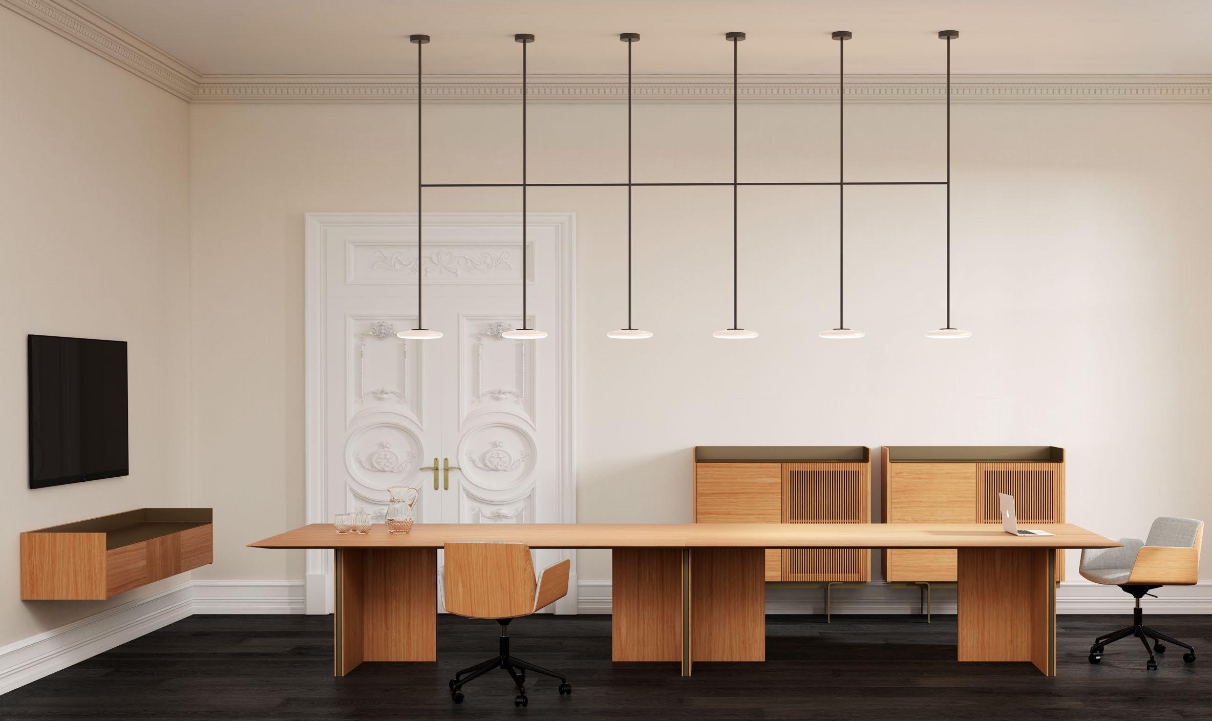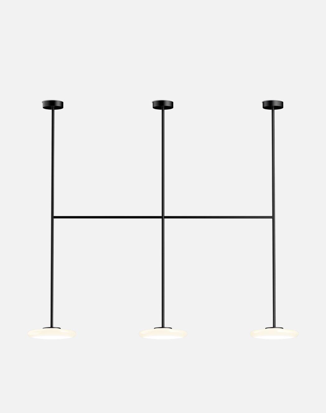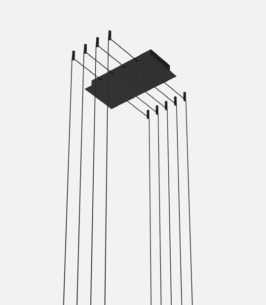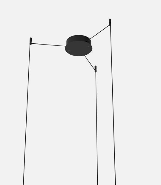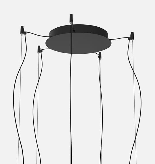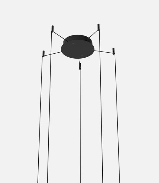 The cluster is a system that allows several pendant lamps to be connected to a single power point. It provides complete freedom to create with light, illuminate large spaces, or design compositions with multiple pendant lamps.