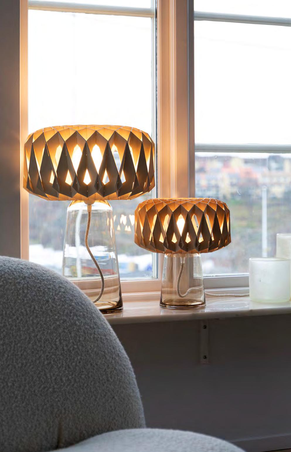 Signature Table 35 introduces a new chapter in the Pilke Lights collection, combining our signature wooden shade design with a striking new element – a sculptural glass base. This elegant table lamp brings a fresh interpretation to Nordic lighting design, balancing natural materials with refined craftsmanship. Featuring a newly designed 35 cm wooden shade, the lamp creates a warm, patterned glow that enhances both modern and classic interiors. The transparent glass base adds lightness and sophistication, offering a subtle contrast to the geometric wood structure above. Perfect for bedside tables, living room corners or workspaces, Signature Table 35 is both a statement piece and a functional light source – designed to elevate your everyday environments.