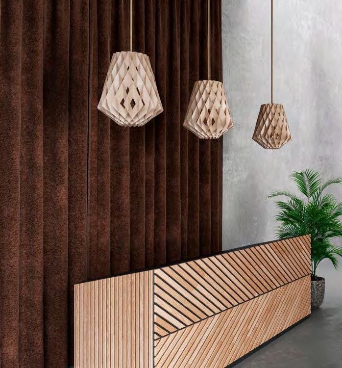 The sophisticated Pilke 30/70 with it’s ornamental appearance makes a statement in any domestic or public space. Install it in high spaces or staircases one by one or in a group. The stylish geometric design and natural, sustainable wood bring warmth and wellbeing to your life. Traditional Finnish shingle work remastered by today’s computer technology enables assembly without using any glue or screws. Handcrafted in Finland.