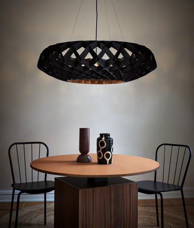 Made with FSC®- or PEFC-certified birch plywood, the lamp features 2.5 mm thick birch plywood that is water-cut, giving the lamp a unique look and feel. Each Verna lamp is carefully assembled by hand, with rings in black painted wood and a row of “wings” attached, 30 pieces on the smallest, 34 on the middle and as many as 60 pieces on the largest – creating a beautiful downward light that’s perfect for any space. Simo Serpola was inspired by the essence of spring when he designed the series, Verna mean spring-green in Finnish.