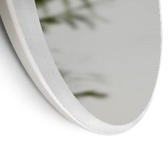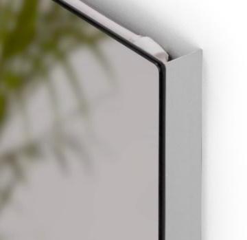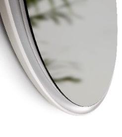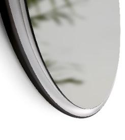 Organic mirrors with an edge screen-printed frame in different colors Frameless, and smoothly polished edges to create a “free-floating effect" on the wall