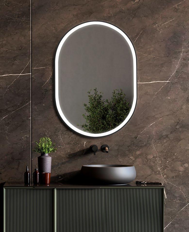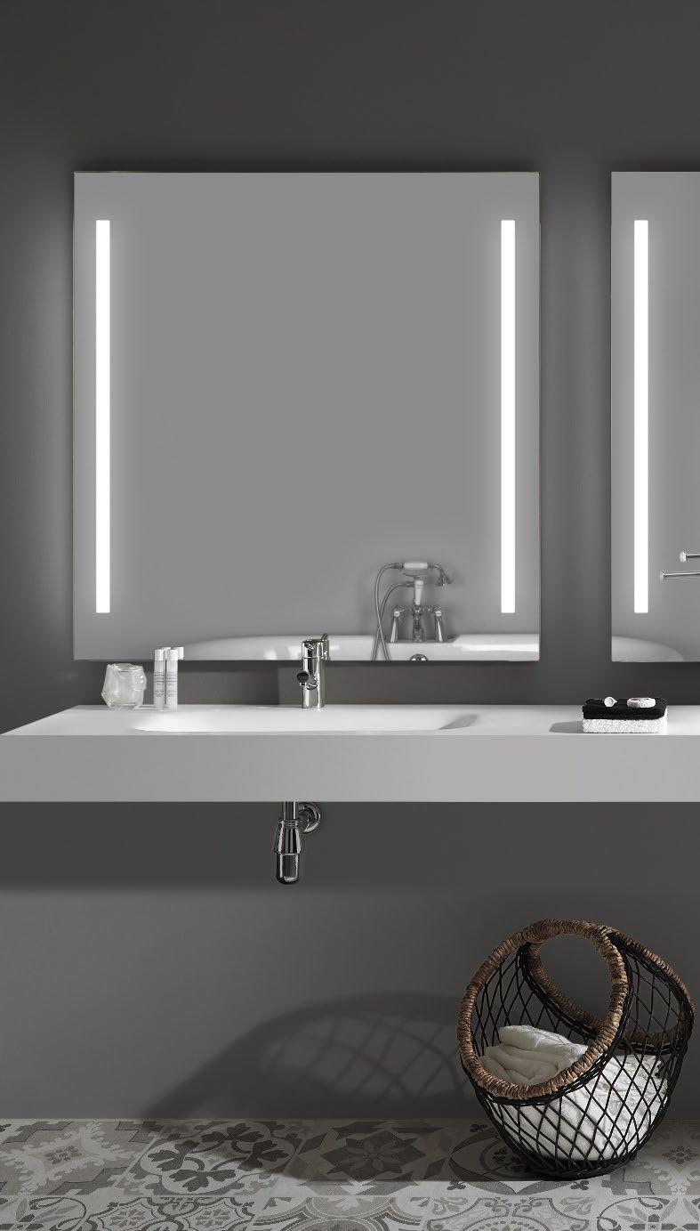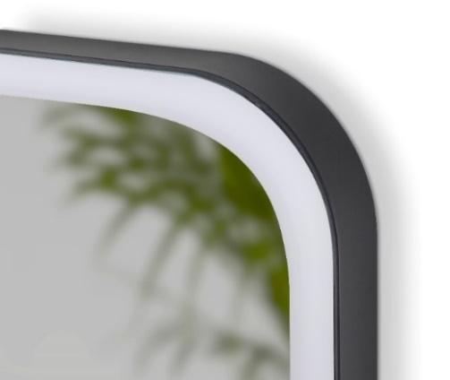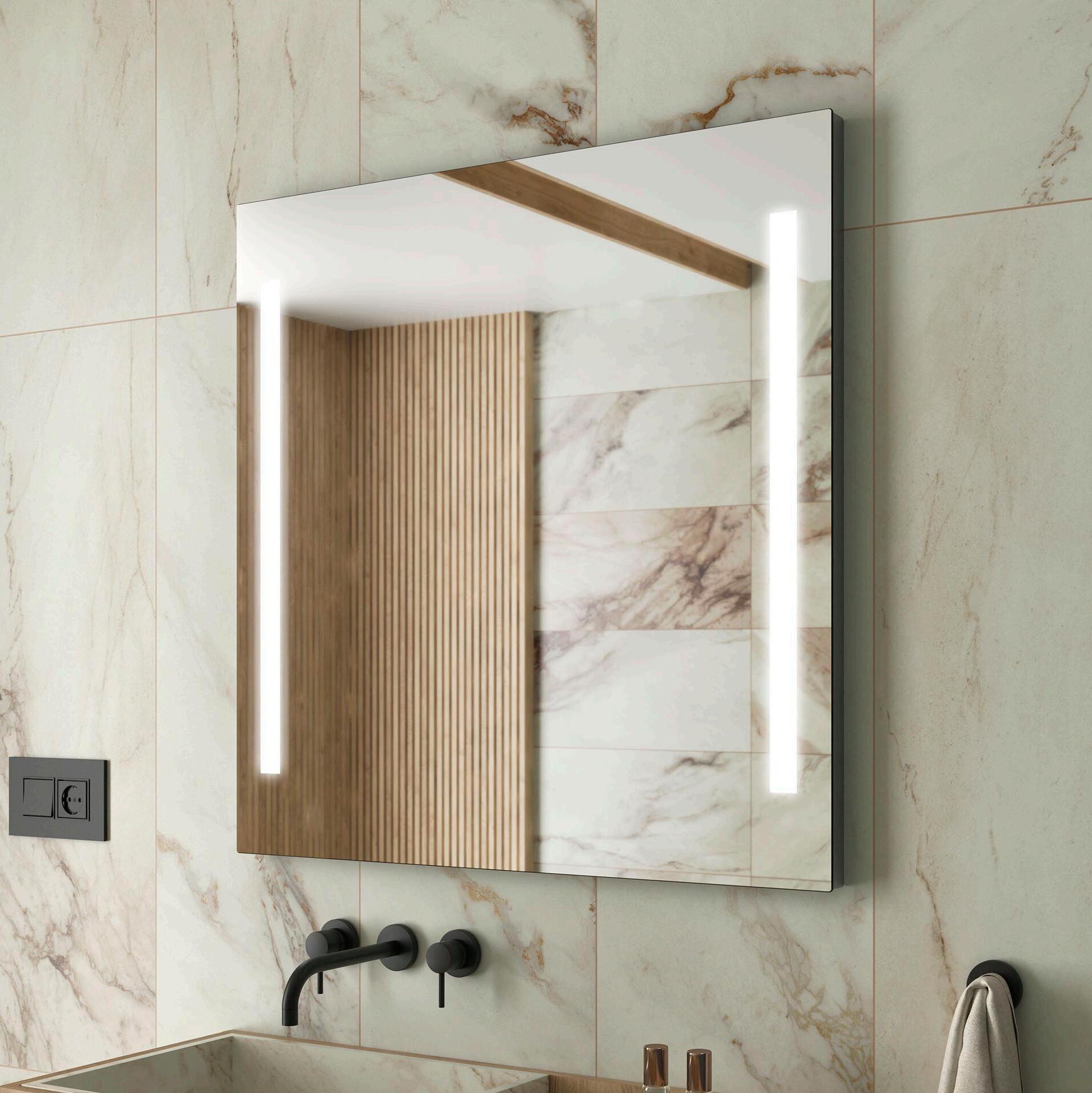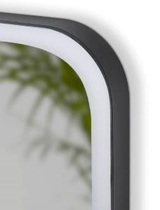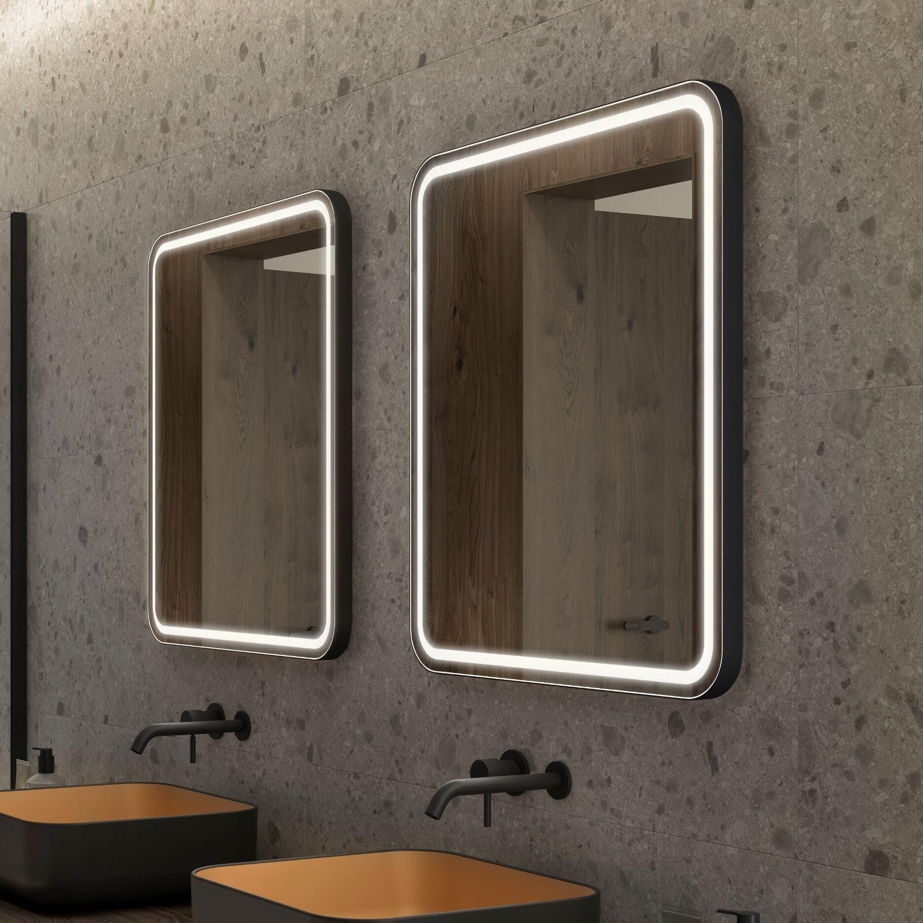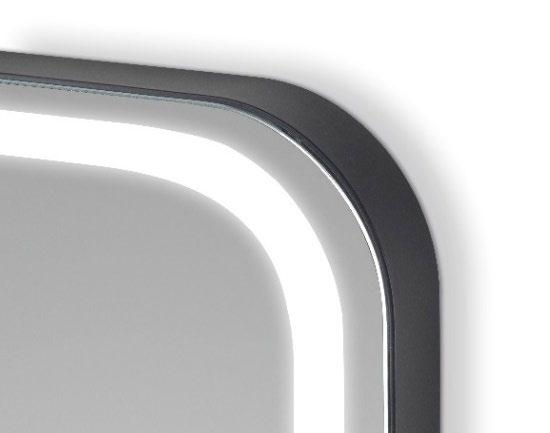Square and rectangular mirrors with an extruded aluminium frame and integrated LED.