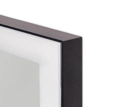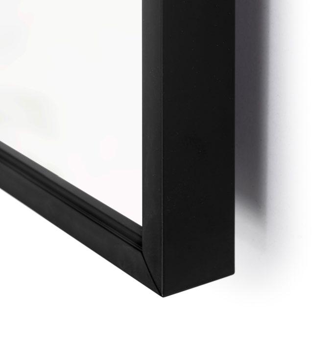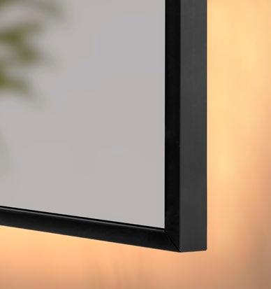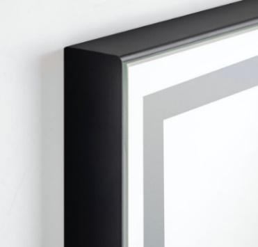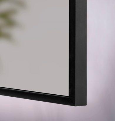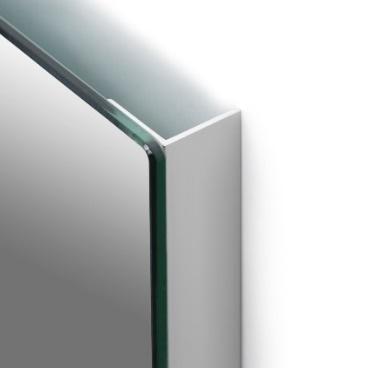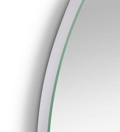 Frameless mirrors with beveled edges Smoothly polished edges to create a “free-floating effect" on the wall