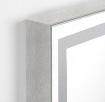 Espejos de luz “directa e indirecta” a través de un arenado perimetral, Sin marco, con cantos suavemente pulidos para crear un “efecto volado” sobre la pared.