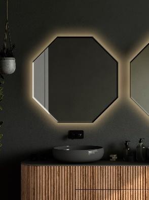 Espejos cuadrados y rectangulares con marco de extrusión de aluminio con LED integrado para ofrecer una iluminación indirecta.