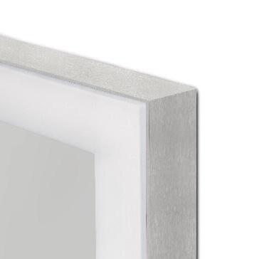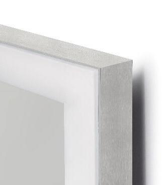 directa a través de un arenado perimetral Con cantos suavemente pulidos y sin marco, para crear un “efecto volado” sobre la pared