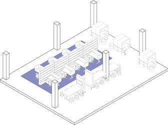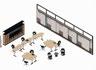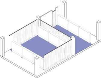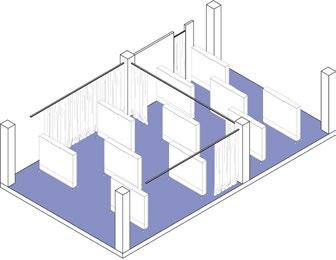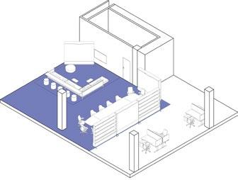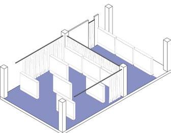 Moveable screens are utilized as partitions based on the RETI organization's need for display and educational space. The usage of several layouts enables flexible response to event arrangements. In the basic module's support, screens can be hanged. The screen can be a whiteboard for writing and drawing or an digital screen for display. There are also screens with acoustic panels ability to solve noise issues in open layouts.