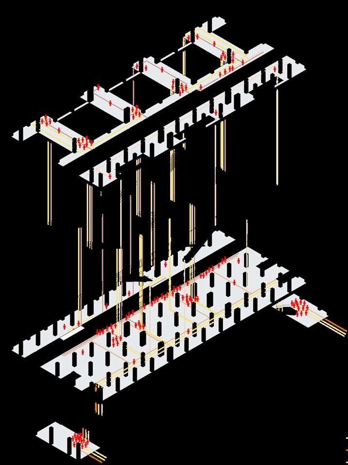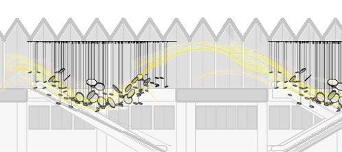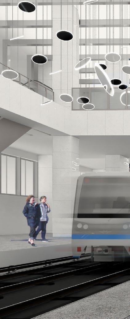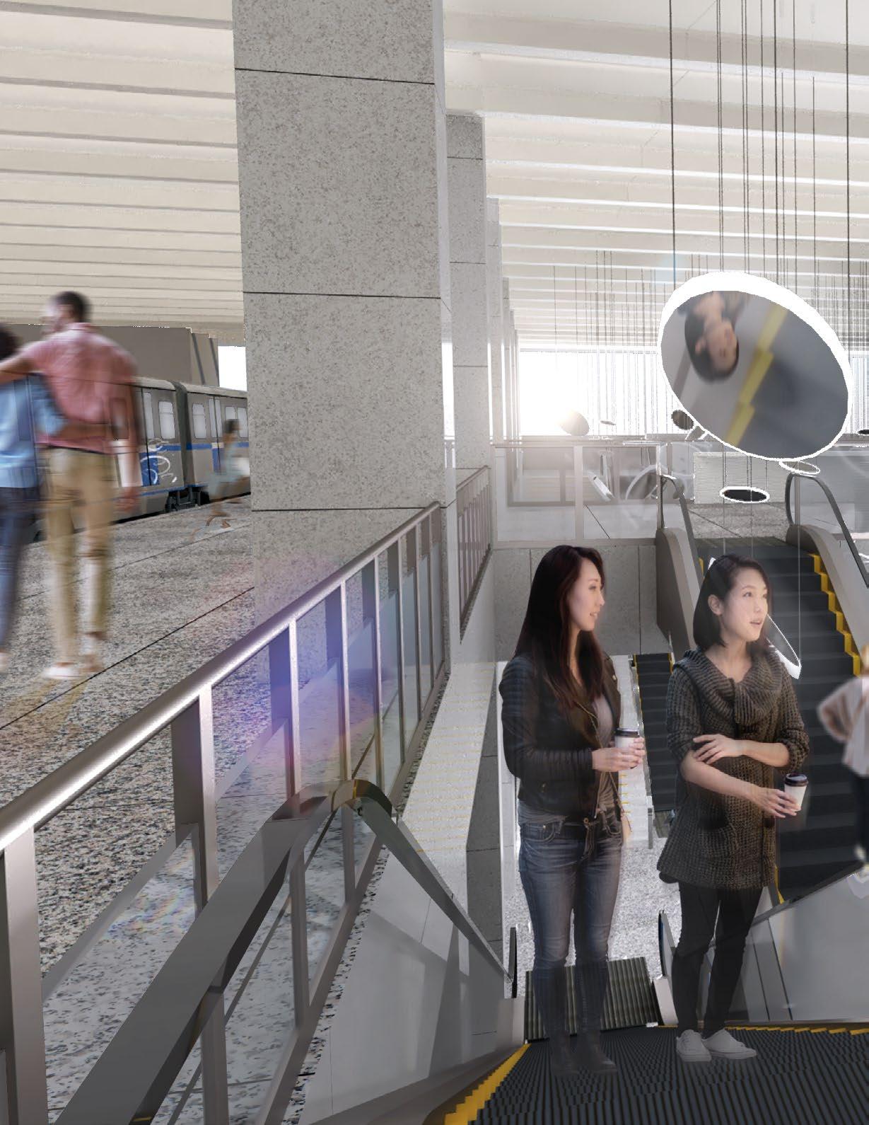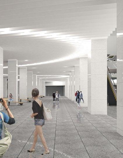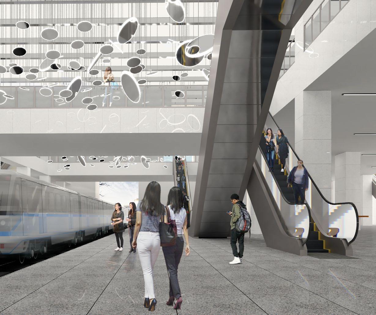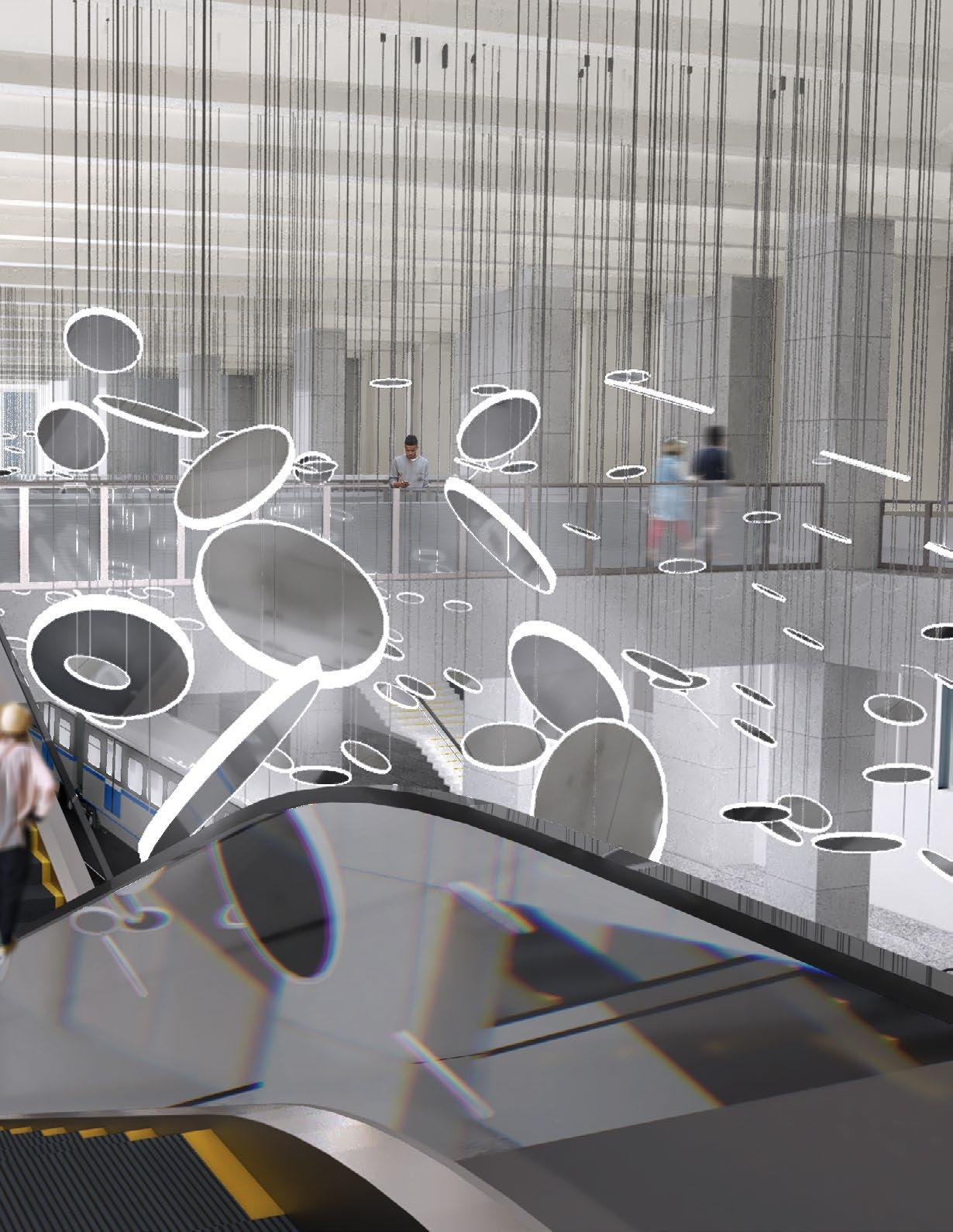 With mirror arrangements to reflect sunlight, the interior metro space will be even more enriched. Through light and shadow, people in it will see the space from various angles. By a change of light and shadow, the mirror reflection will lend more interaction between the interior metro space and the external world.