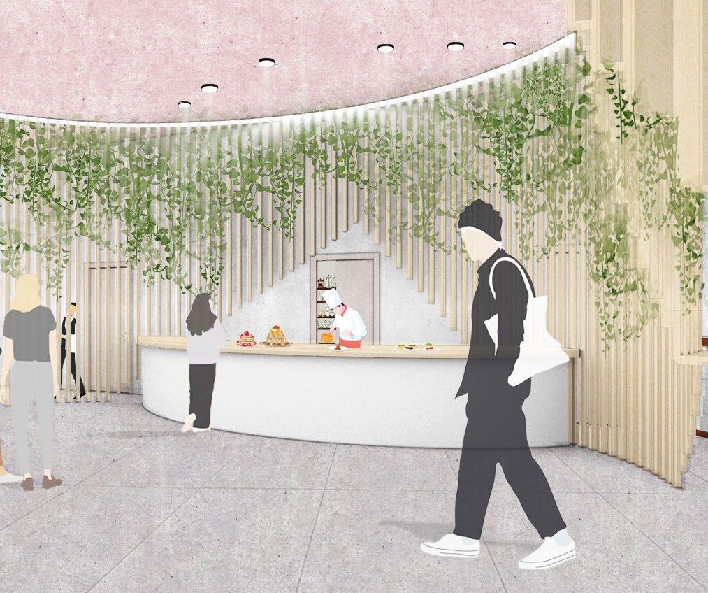 The abstract concept of memory is embodied in the design of the space. When customers walk into different areas of this space, they can feel the changes in taste. In the fine dining area, when customers enter the space for the second course, the taste of the first dessert becomes a memory. Similarly, when