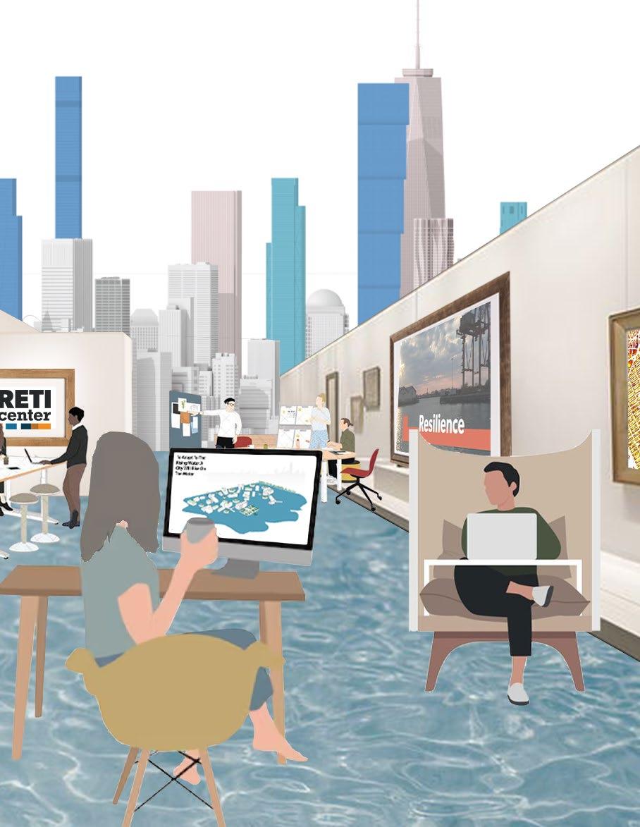 RETI center is a non-profit organization that offers a solution in the face of rising sea levels, extreme weather events, and climate change. Their new office is located on the 8th and 9th floor in the iconic building lever house. The venue lease lasts for two years. RETI center will move back to the red hook area in Brooklyn. The site will house RETI full-time staff as well as rotating project teams working on projects.