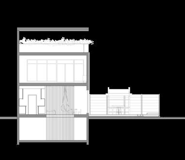 The cut-off floor, which joins the upper and lower level, maintains the continuity of the individual family spaces. The basement is given natural light thanks to the first level’s cut-off flooring. There is plenty of opportunity for creativity and presentation by situating Michael’s sculpting studio outside. The flooring and plants serve as visual representations of the connections between the inside and outside.