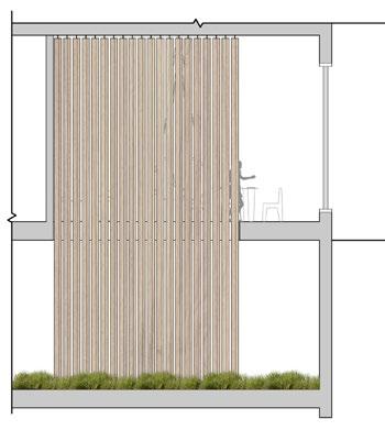 The boundary between the interior and exterior was broken. The interior floor material continues to the exterior yard. The ooutdoor plants extension to the interior.