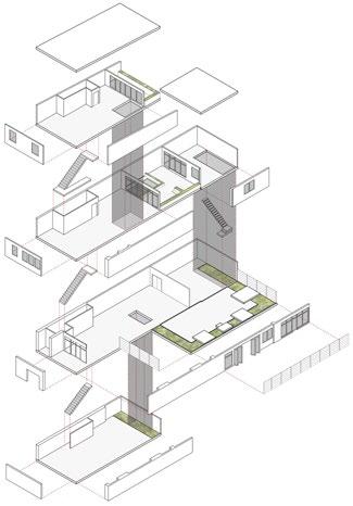 Furthermore, the boundary between private and public was redefined in this project. Two families living in the same building are more like a community. The limited footprint and the sharedhouse idea brought two families together under the same roof.