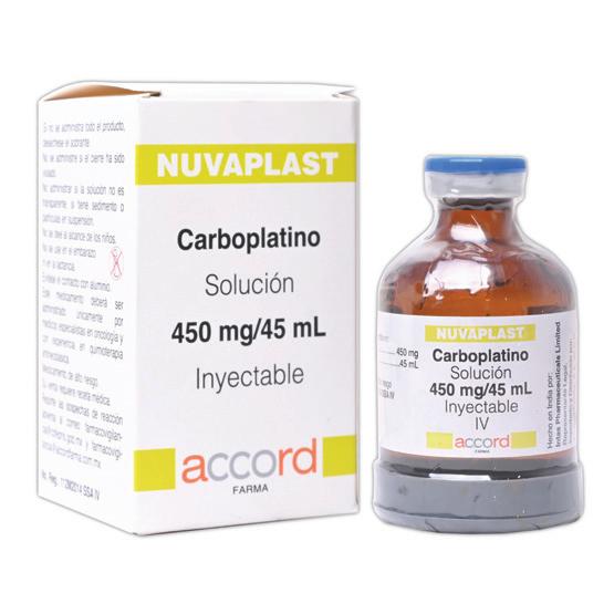 El frasco ámpula contiene: Carboplatino 150mg/15ml. (Cada mL equivale a 10mg.) Comparar con: