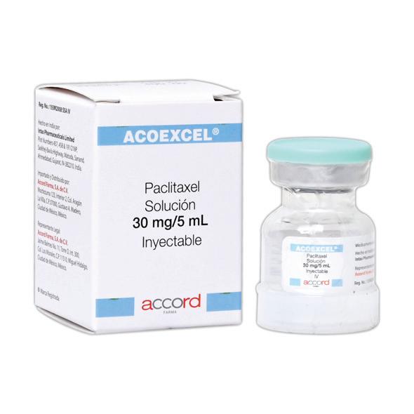 El frasco ámpula con solución contiene: Paclitaxel 30mg/5ml. (Cada mL de solución equivale a 6mg).