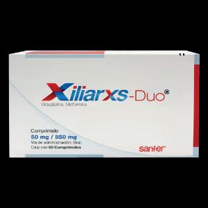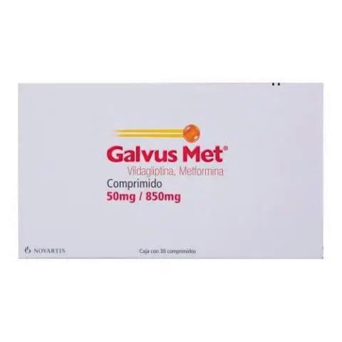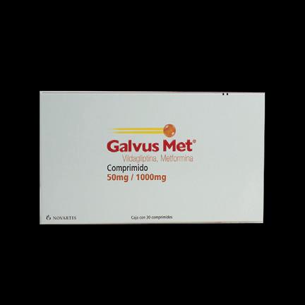 Para pacientes con diabetes mellitus de tipo 2: Está indicado como complemento de la dieta y ejercicio para mejorar el control de la glucemia en pacientes con diabetes mellitus de tipo 2, cuya diabetes no pueda controlarse adecuadamente con monoterapia de clorhidrato de metformina o vildagliptina, o que ya estén en tratamiento con ambos fármacos, pero en comprimidos separados. En asociación con una sulfonilurea (es decir, en terapia triple), como complemento de la dieta y el ejercicio, en pacientes que no han conseguido un control adecuado con metformina y una sulfonilurea. Como tratamiento aditivo a la insulina, como complemento de la dieta y el ejercicio, para mejorar el control glucémico en pacientes que no han conseguido un control adecuado de la glucemia con una dosis estable de insulina y la monoterapia de metformina. También como terapia inicial en pacientes con Diabetes Mellitus Tipo 2 cuando la diabetes no esté adecuadamente controlada sólo por dieta y ejercicio. Cada comprimido contiene: Vildagliptina 50mg+Clorhidrato de Metformina 850 mg.