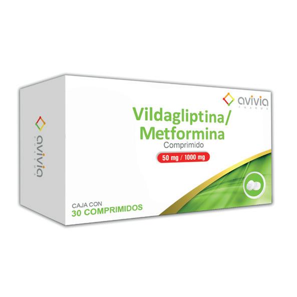 Cada comprimido contiene: Vildagliptina 50mg+Metformina 1000mg.