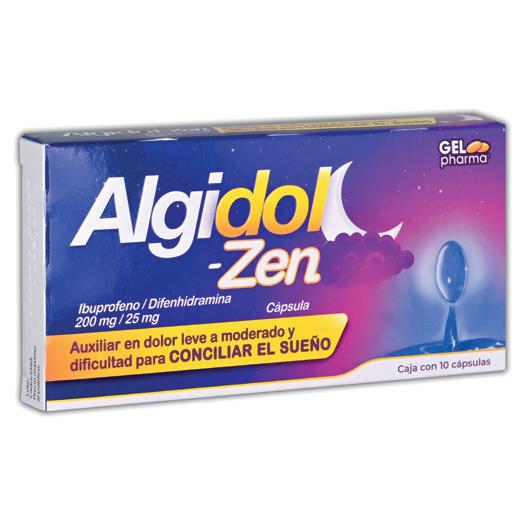 Fórmula: Cada cápsula contiene: Ibuprofeno 200mg+Difenhidramina 25mg.