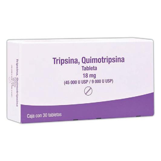 Indicación Terapéutica: Enzimático brinolítico. Procesos in amatorios crónicos y degenerativos en general. Cada tableta contiene: Tripsina+Quimotripsina 18mg,