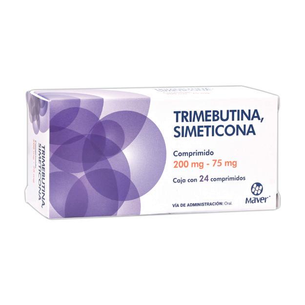 Fórmula: El sobre de 5g contiene: Trimebutina 0.60g. / El frasco con 26mL contiene: Simeticona 0.60g. (Cada 100 mL de suspensión reconstituida contienen 2g de Trimebutina y 2g de Simeticona).