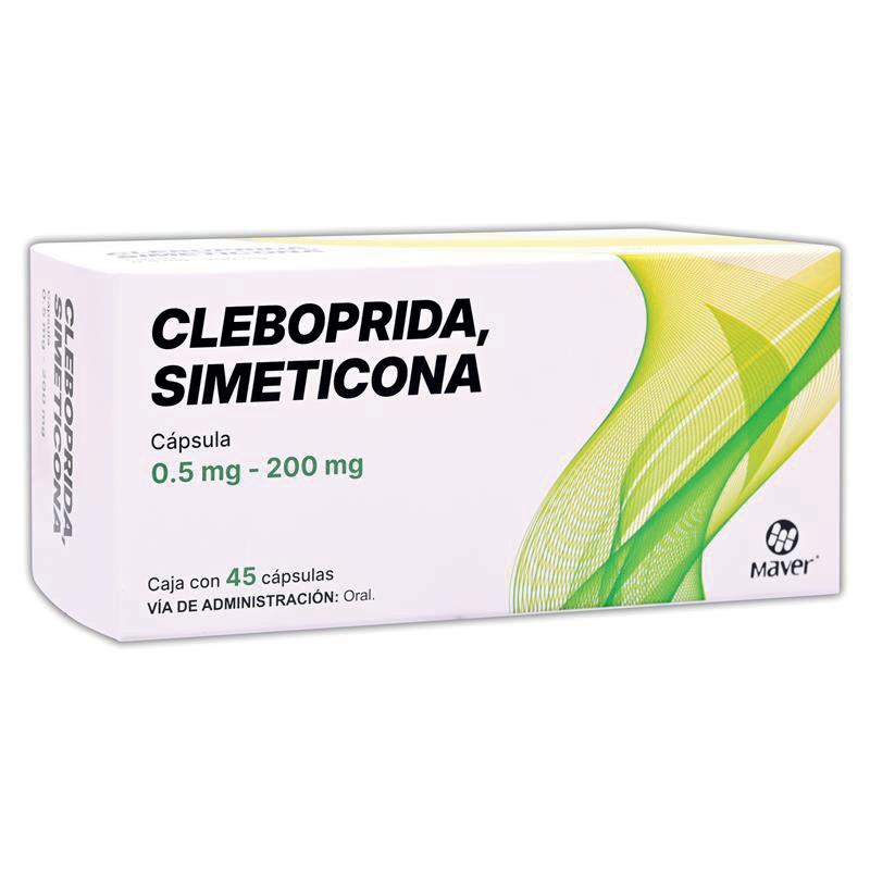 Fórmula: Cada cápsula contiene: Malato Ácido de Cleboprida 0.5mg+Simeticona 200mg.