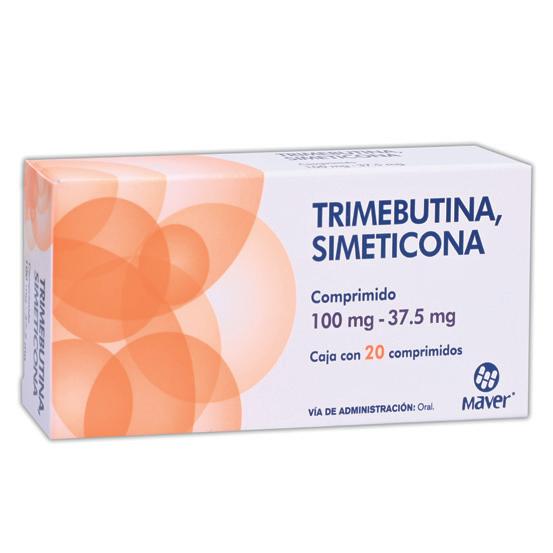 Fórmula: El sobre de 5g contiene: Trimebutina 0.60g. / El frasco con 26mL contiene: Simeticona 0.60g. (Cada 100 mL de suspensión reconstituida contienen 2g de Trimebutina y 2g de Simeticona).