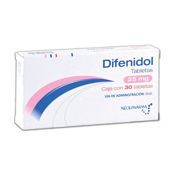 Cada tableta contiene: Difenidol 25mg.